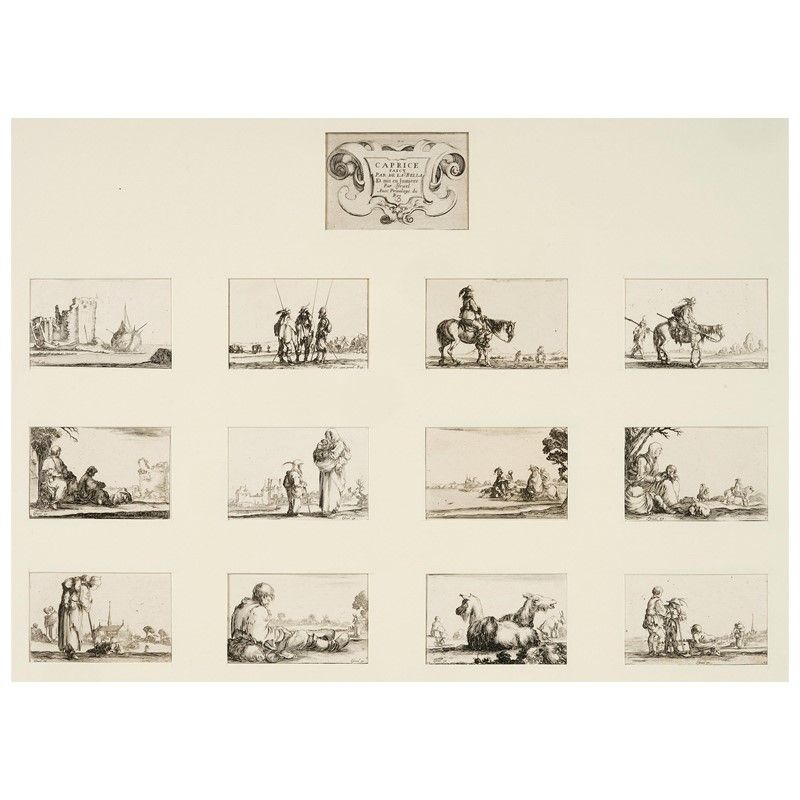 Stefano Della Bella (Firenze 1610 – 1664) CAPRICCI. 1642 serie completa e omogenea di 12 stampe e un frontespizio, acqueforte su carta vergellata, mm 49/55x76/83 II stato su 2