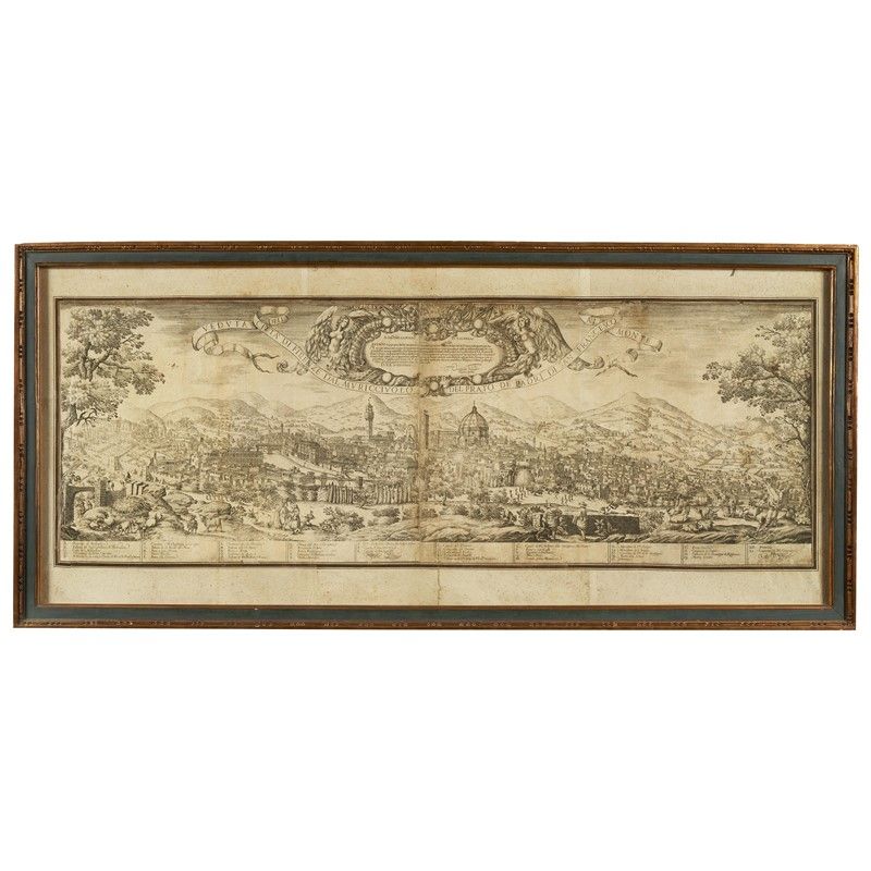 Valerio Spada (Colle Val d'Elsa, 1613 - Firenze, 1688) VEDUTA DELLA CITTÀ DI FIRENZE DAL MURICCIOLO DEL PORTO DEI PADRI DI SAN FRANCESCO AL MONTE acquaforte in due fogli riuniti, carta vergellata, mm 1220x450