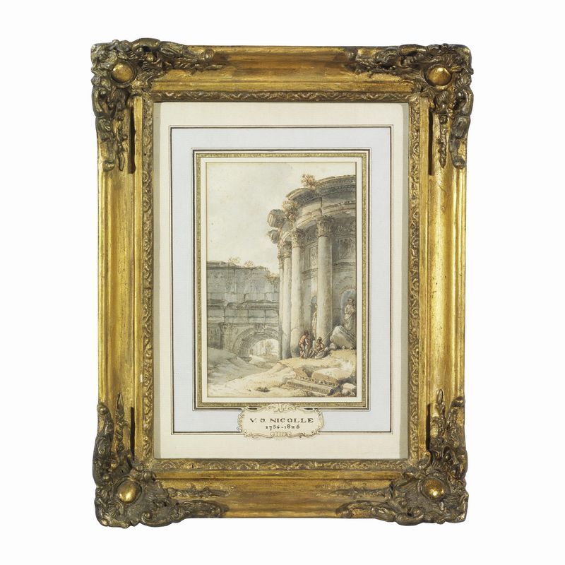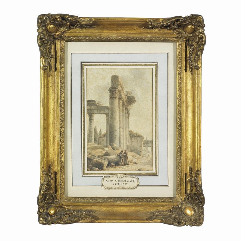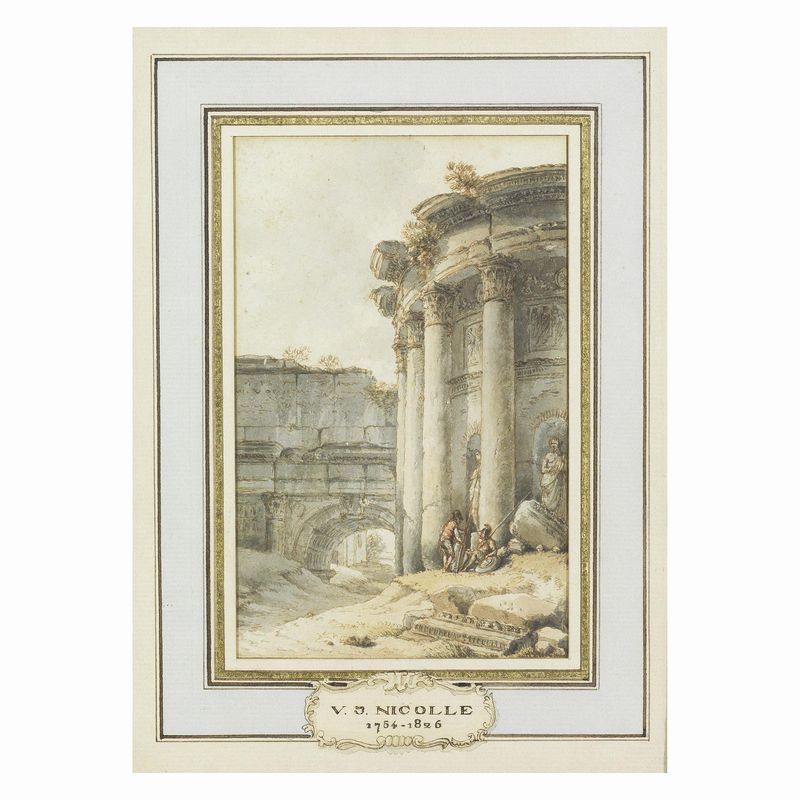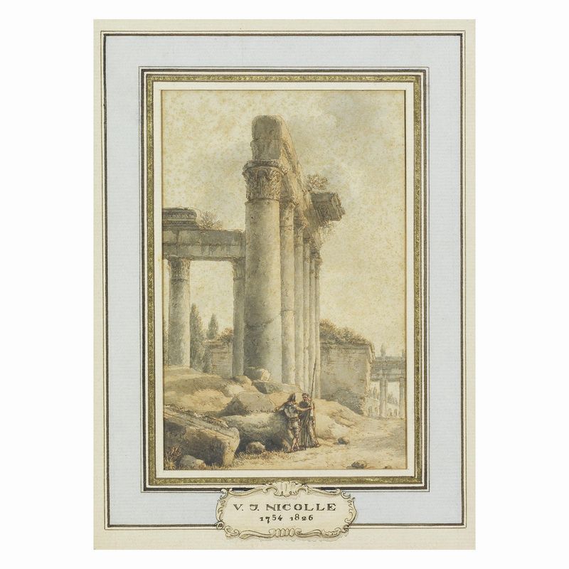 coppia di disegni, penna e inchiostro, acquarello colorato, carta vergellata, mm 165x112