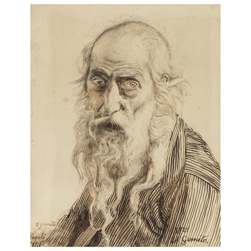 Vincenzo Gemito (Napoli 1852 - 1929) AUTORITRATTO matita e china su carta, mm 295x235 firmato e datato Napoli 1925 in basso a sinistra, firmato e datato 1925 in basso a destra