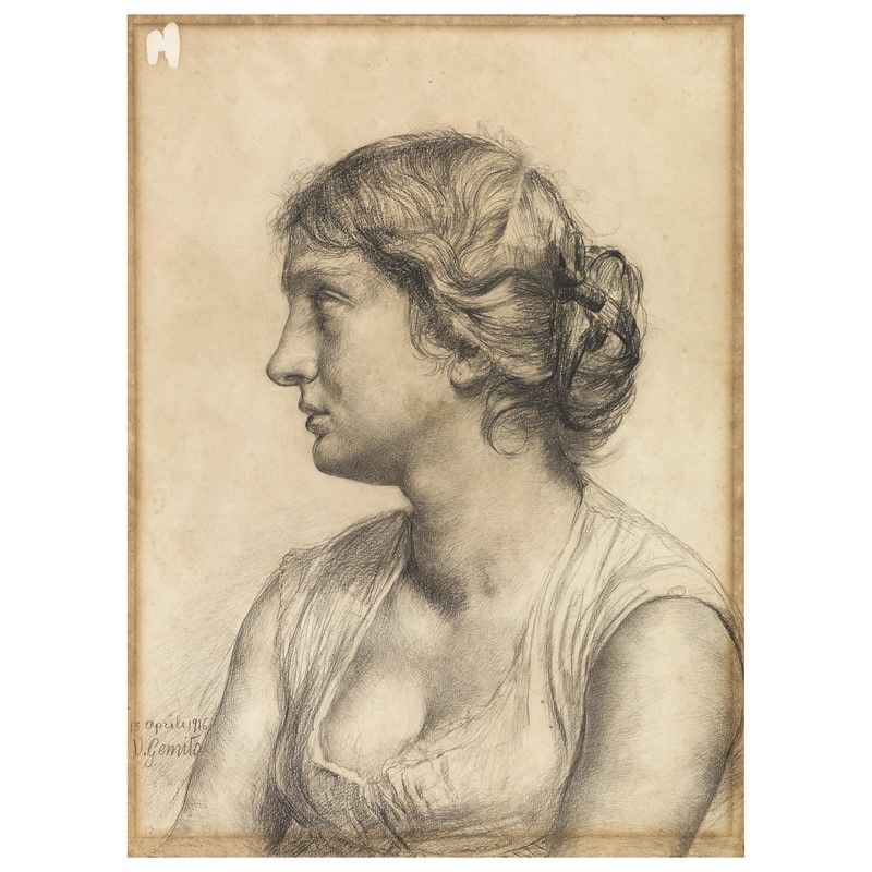 Vincenzo Gemito (Napoli 1852 - 1929) BUSTO DI POPOLANA matita su cartoncino, mm 510x375 doppiamente firmato e datato "13 aprile 1916" in basso a sinistra