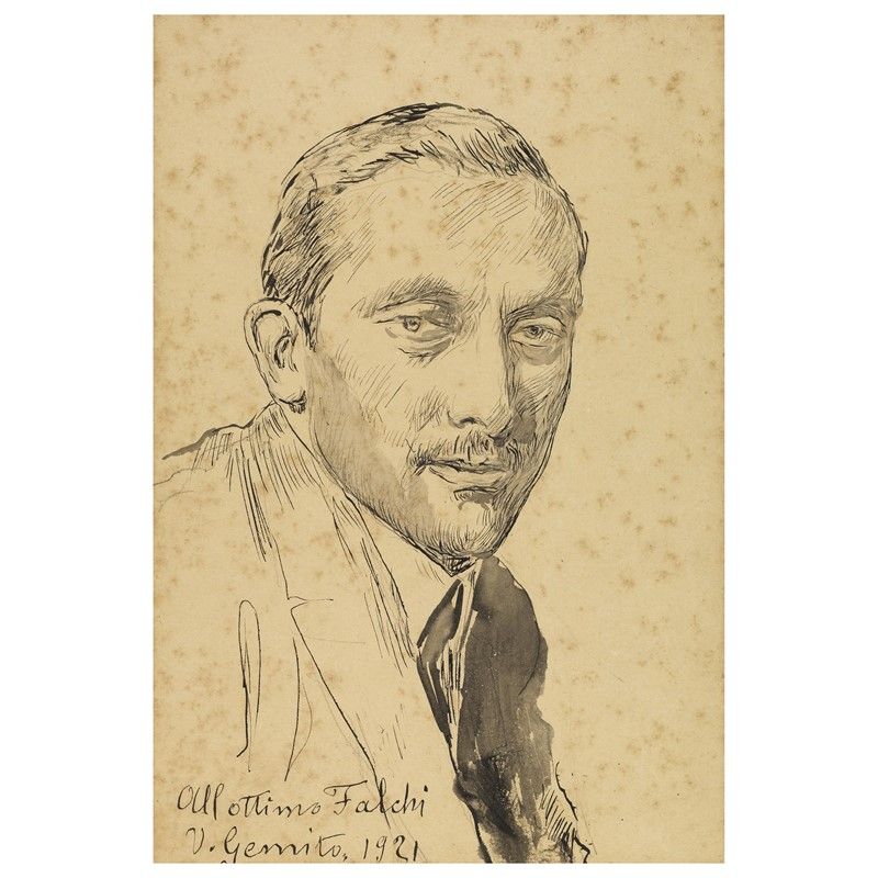 PORTRAIT OF GIUSEPPE FALCHI ink and pencil on paper, 245x165 mm dedicated "All'ottimo Falchi", signed and dated "1921" lower left