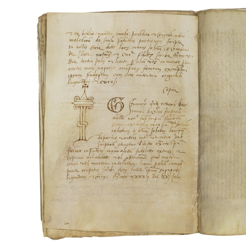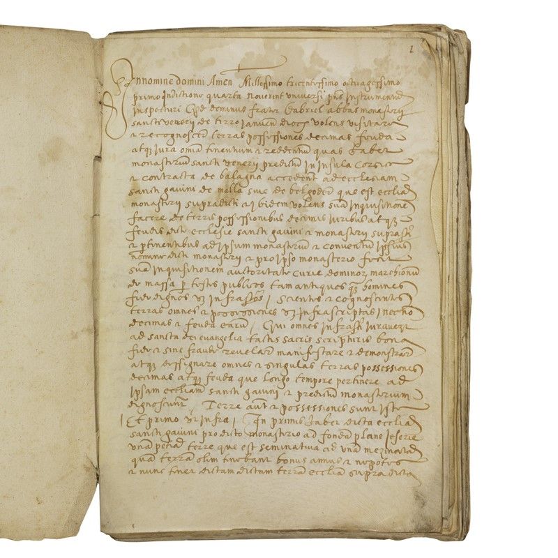 Manoscritto notarile relativo all’abbazia di San Venerio sull’isola del Tino nel comune di Porto Venere, in provincia della Spezia, Liguria, XV secolo.