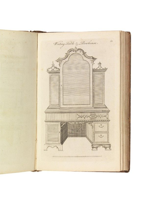 Indispensabile repertorio d’arredamento settecentesco, che illustra: sedie, tavolini, sedie da giardino, sedie imbottite, scrittoi, tavolini da toilette, tavoli da gioco, comodini, cassettoni, mensole e mobili per porcellane, librerie e mensole per libri, librerie in stile gotico, candelabri, lampadari, lanterne, cornici, letti a baldacchino, vassoi, decorazioni e attrezzi per camini, balaustre, balconi in ferro battuto, ecc. Numerosi i mobili per conservare i libri.