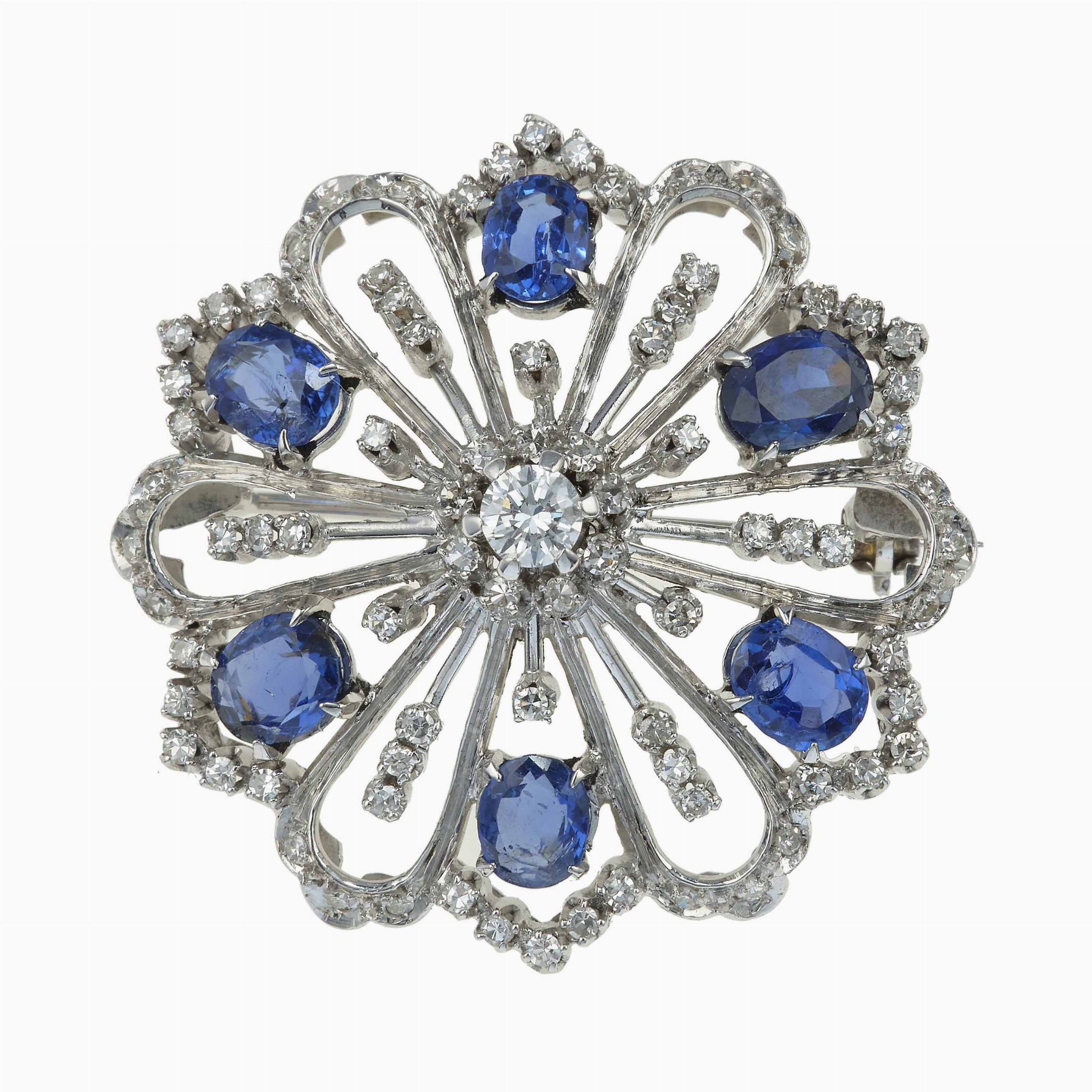 Spilla con zaffiri Sri Lanka, nessuna indicazione di trattamento termico e diama [..]