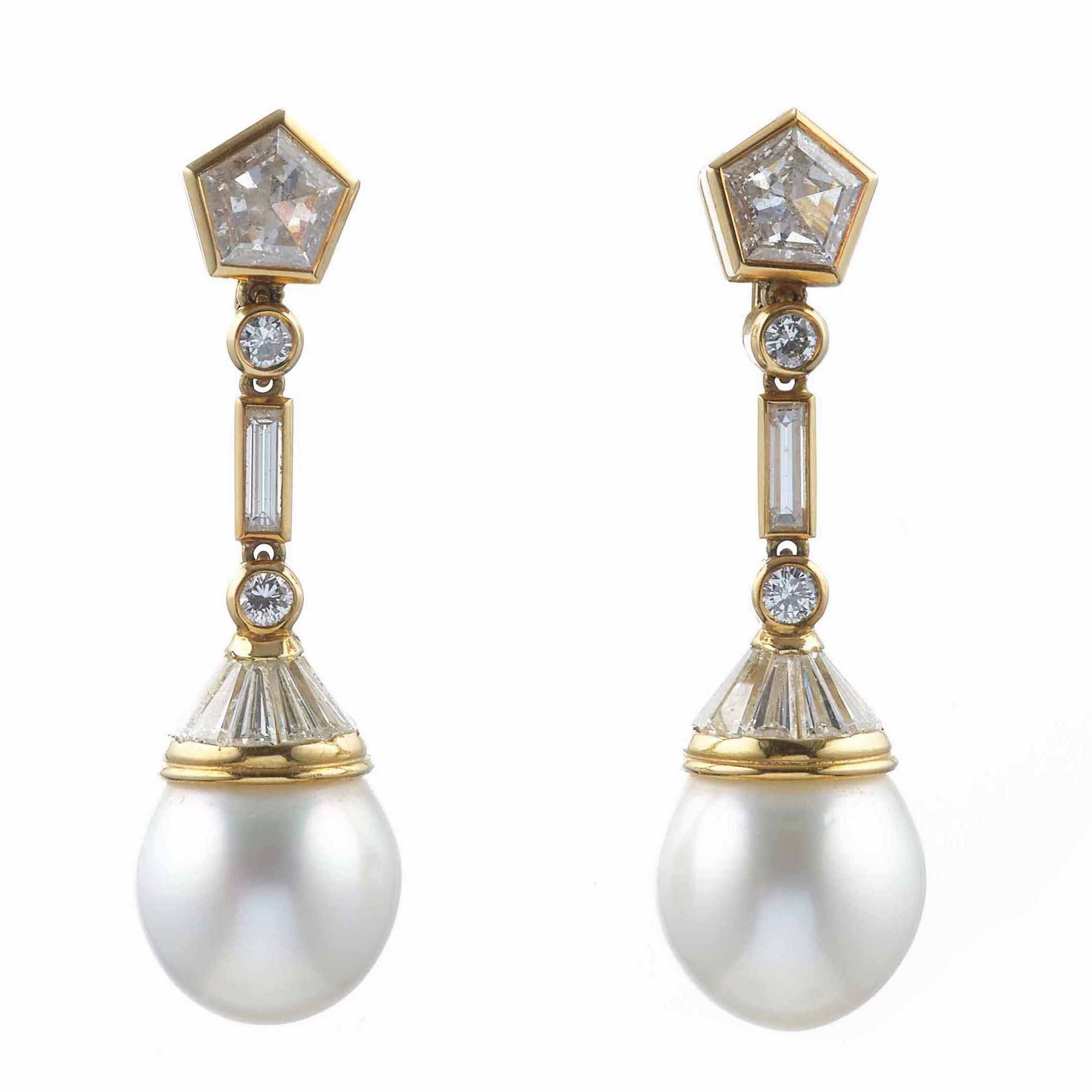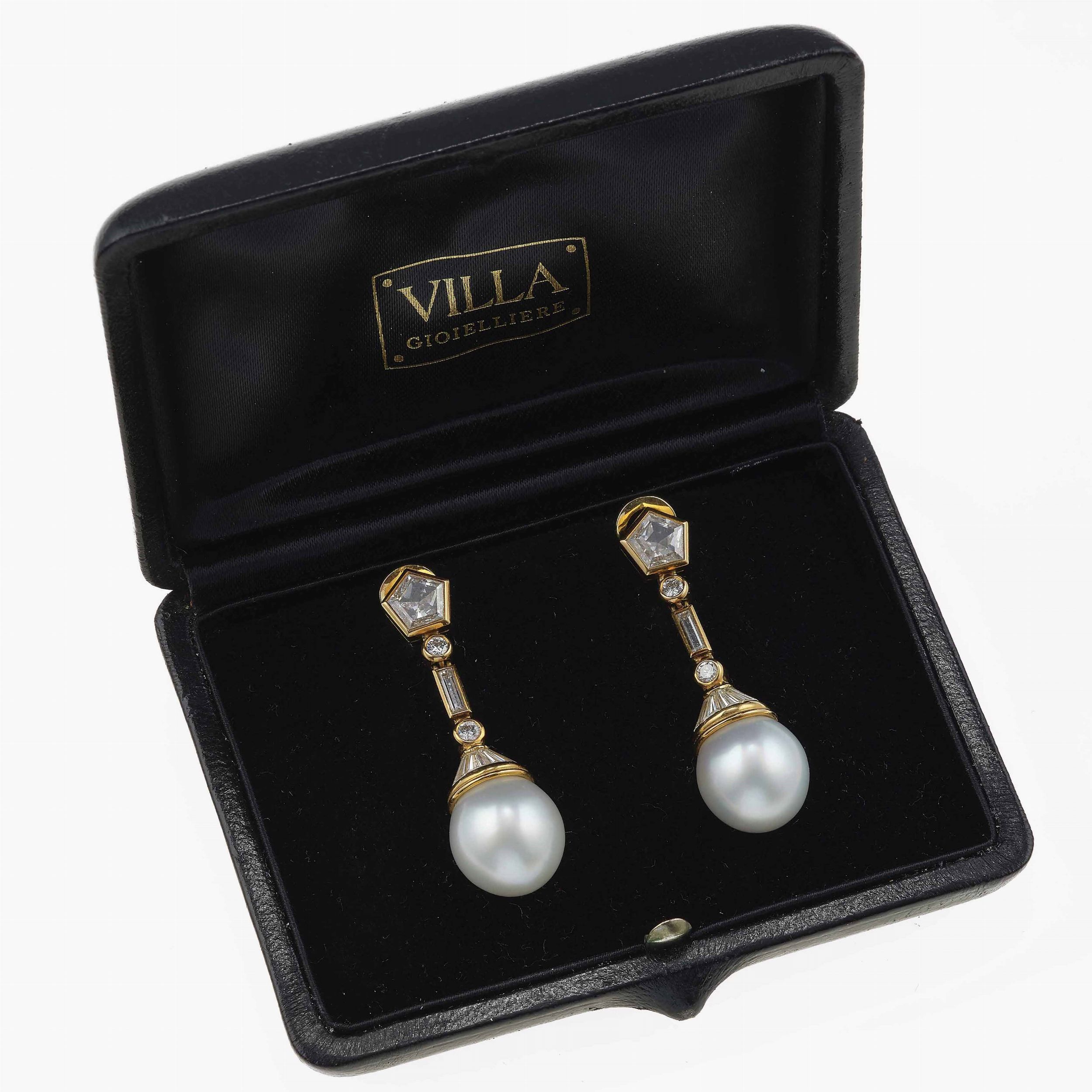 Villa. Orecchini pendenti con perle coltivate e diamanti