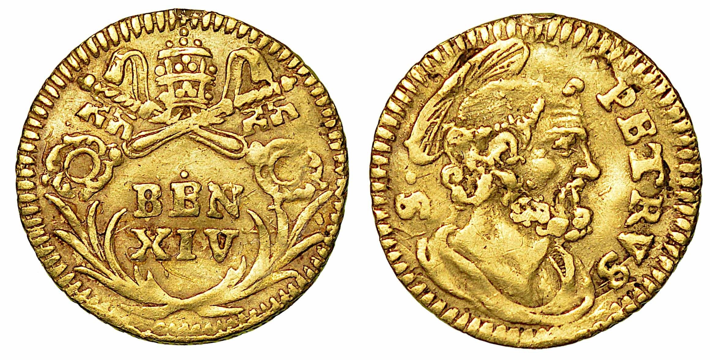 BENEDETTO XIV (PROSPERO LORENZO LAMBERTINI), 1740-1758. Mezzo Scudo d'oro. Roma.