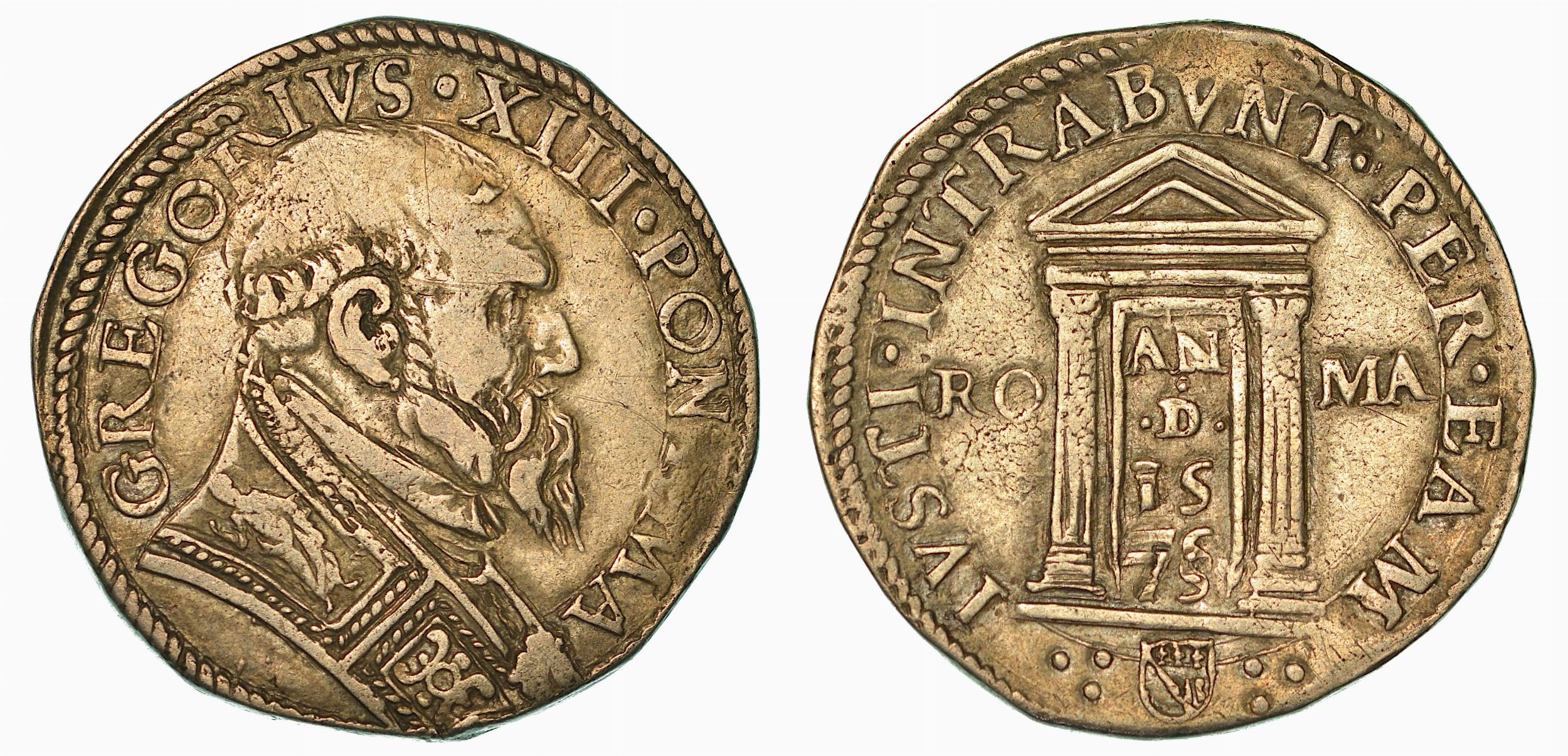 GREGORIO XIII (UGO BONCOMPAGNI), 1572-1585. Testone 1575. Anno Santo.