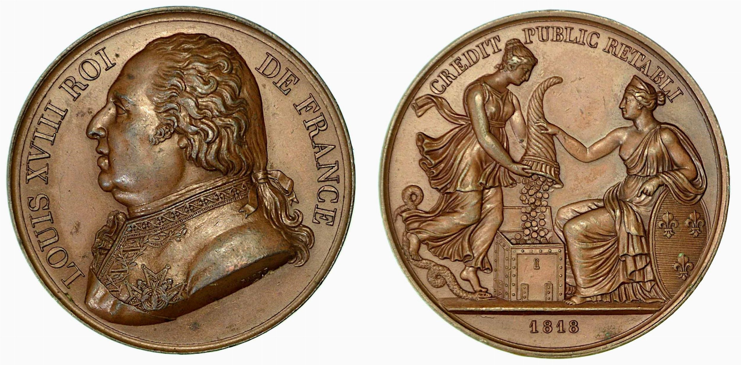 LUIGI XVIII, 1814-1824. RIDUZIONE DEL CREDITO PUBBLICO. Medaglia in bronzo 1818.