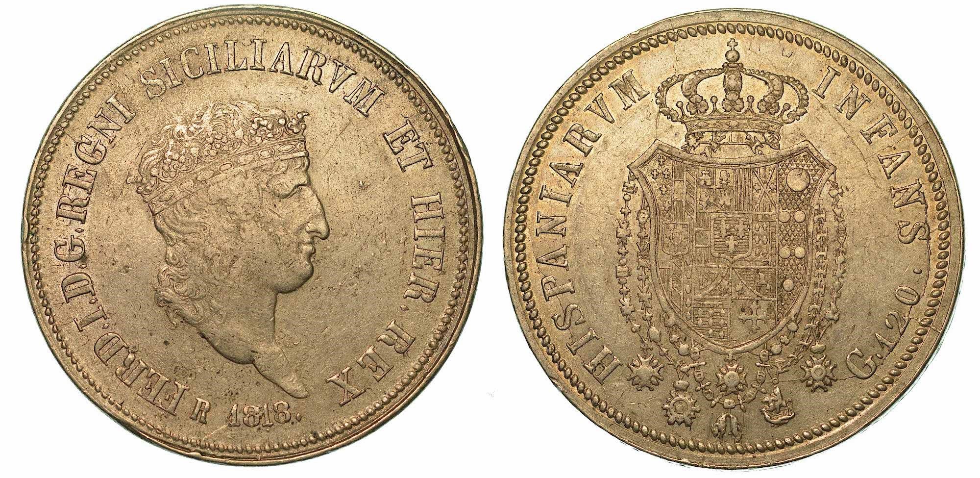 NAPOLI. FERDINANDO I DI BORBONE, 1816-1825. Piastra da 120 Grana 1818. Reimpress [..]