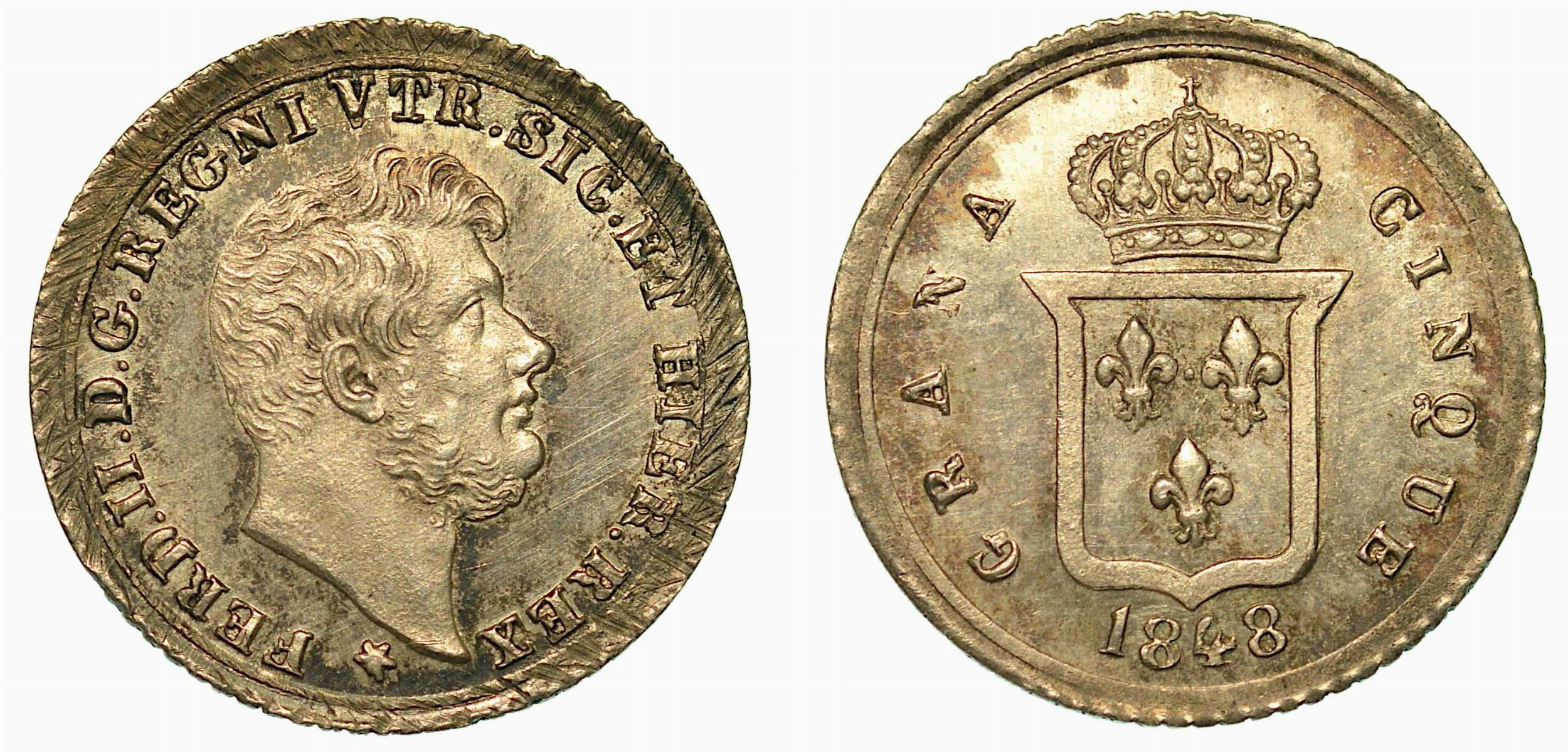 NAPOLI. FERDINANDO II DI BORBONE, 1830-1859. Mezzo Carlino da 5 Grana 1848.