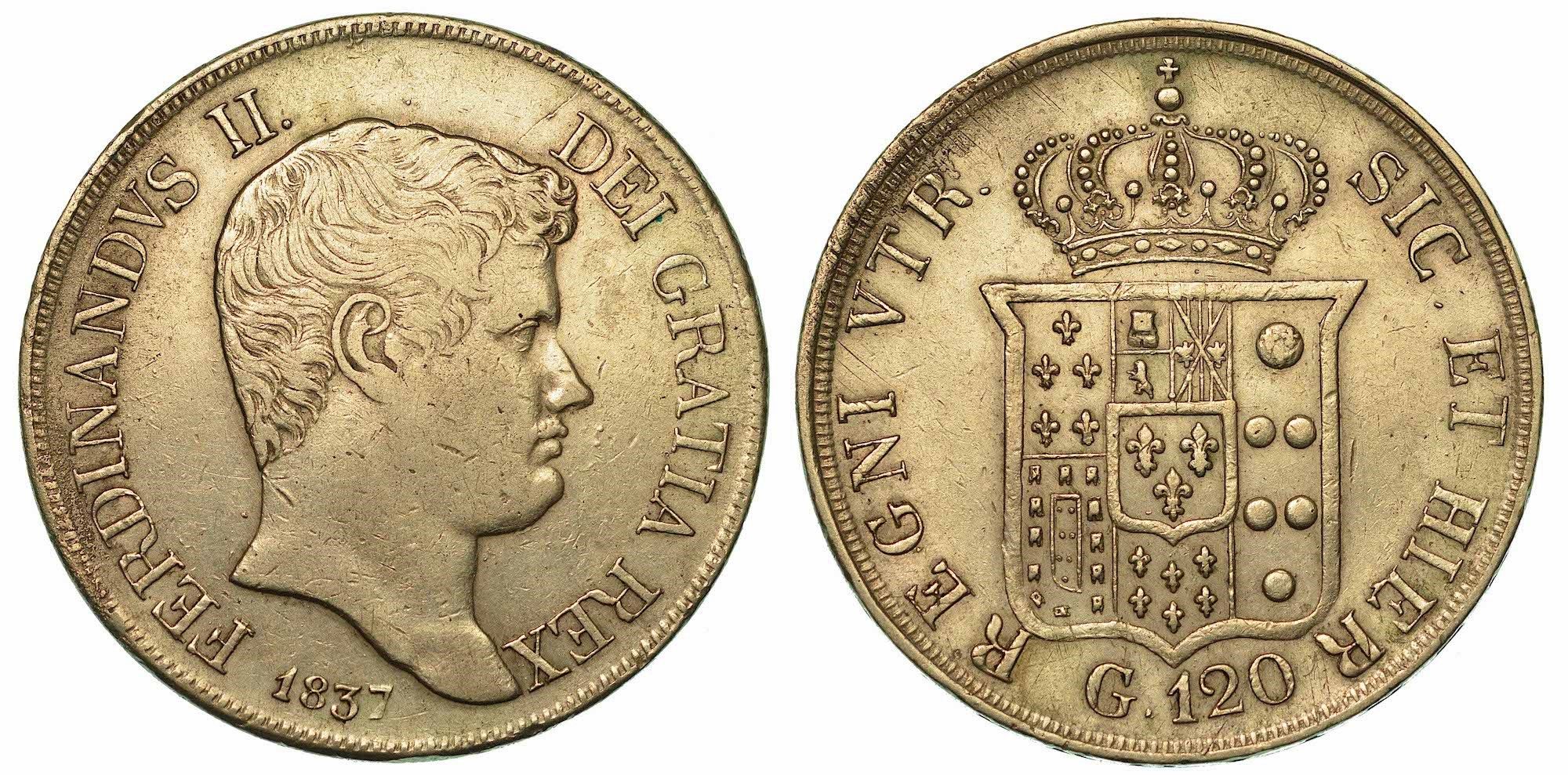 NAPOLI. FERDINANDO II DI BORBONE, 1830-1859. Piastra da 120 Grana 1837.