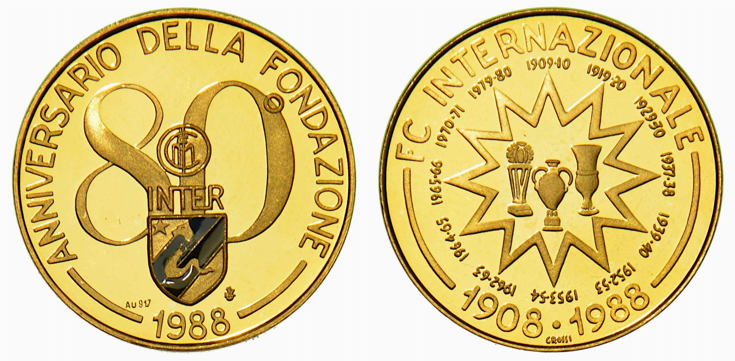 OTTANTESIMO ANNIVERSARIO DELLA FONDAZIONE DELL'INTER (1908-1988). Medaglia ufficiale [..]