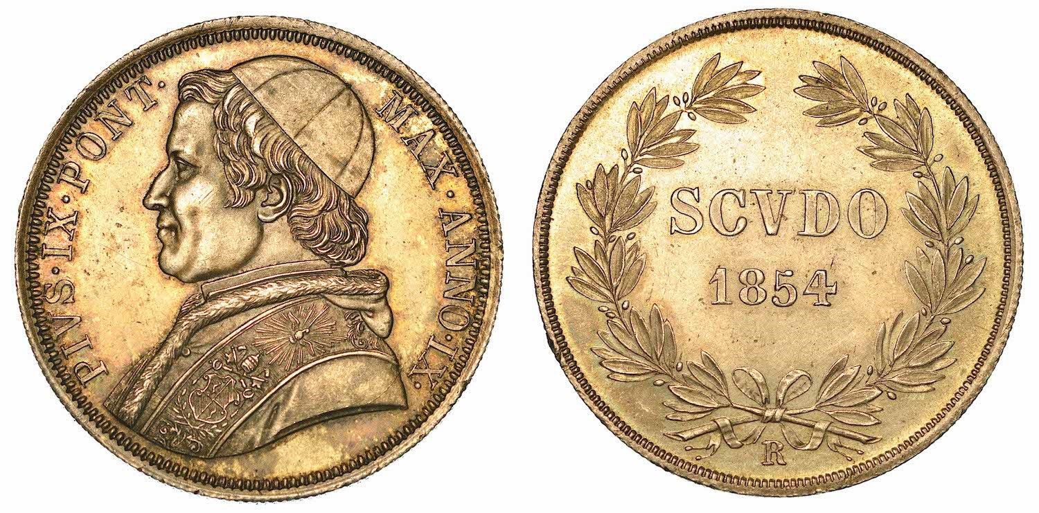 PIO IX (GIOVANNI MARIA MASTAI FERRETTI), 1846-1878. Scudo 1854/A. IX. Roma.