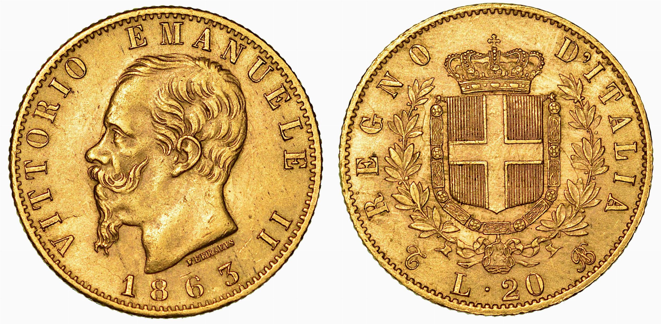 REGNO D'ITALIA. VITTORIO EMANUELE II DI SAVOIA, 1861-1878. 20 Lire 1863. Torino.