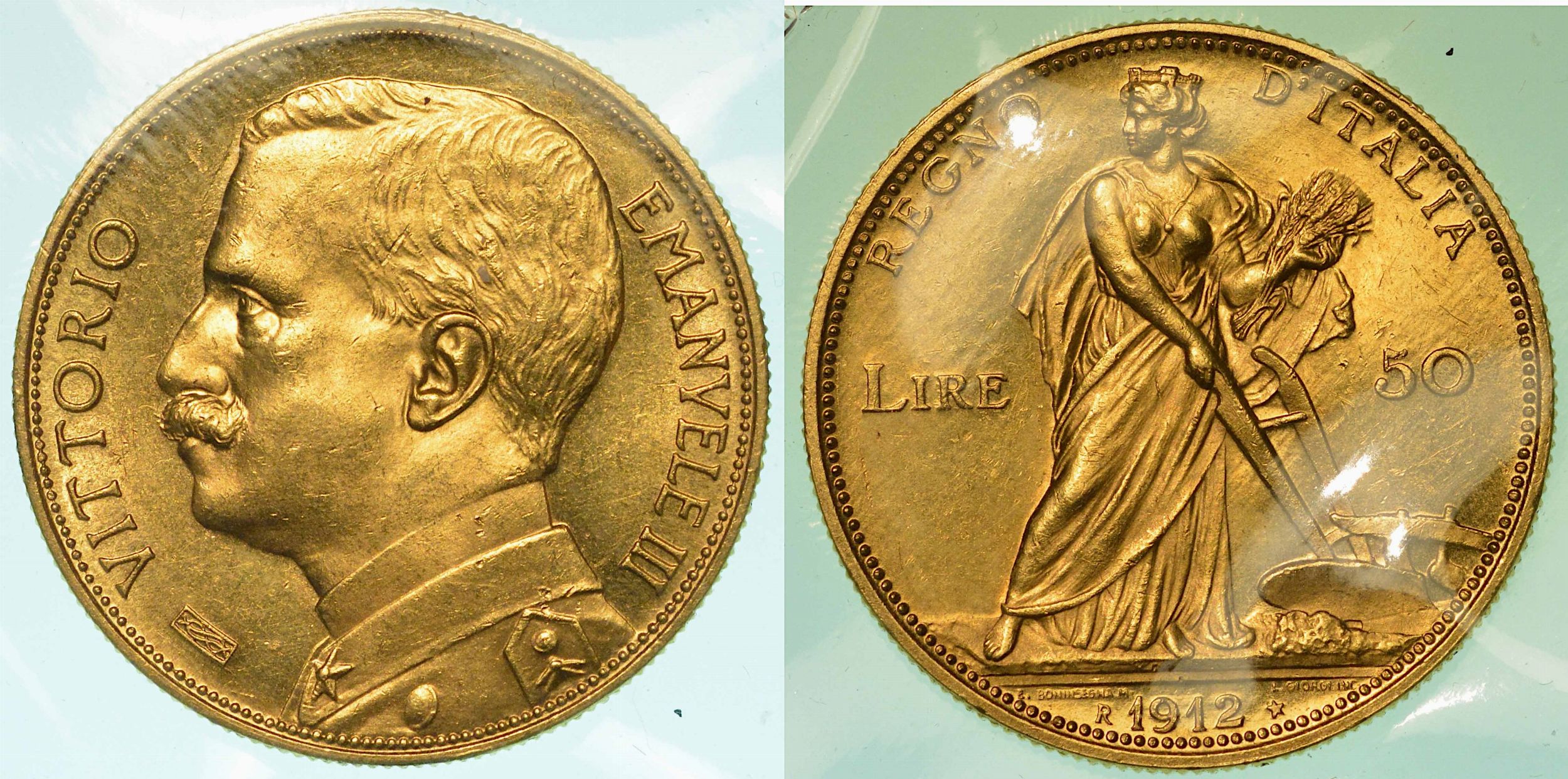 REGNO D'ITALIA. VITTORIO EMANUELE III DI SAVOIA, 1900-1946. 50 Lire 1912. Aratri [..]
