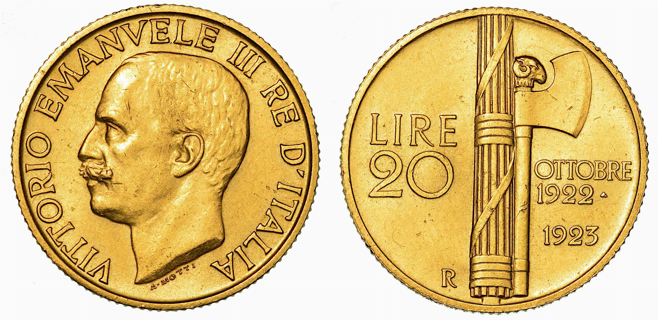REGNO D'ITALIA. VITTORIO EMANUELE III DI SAVOIA, 1900-1946. 20 Lire 1923. Fascet [..]