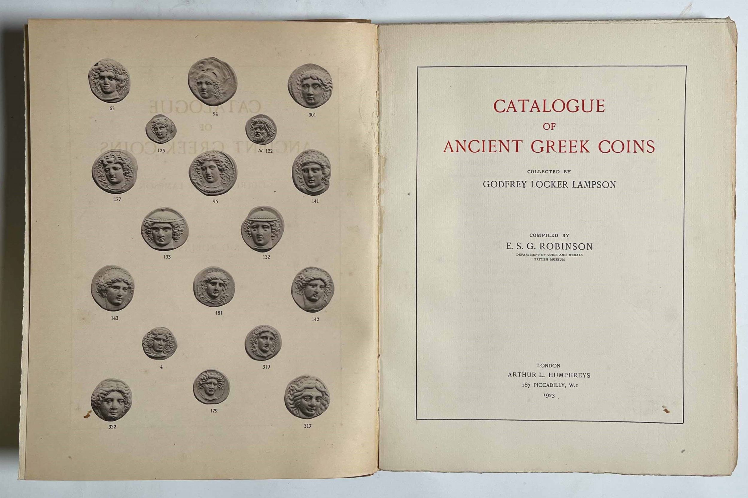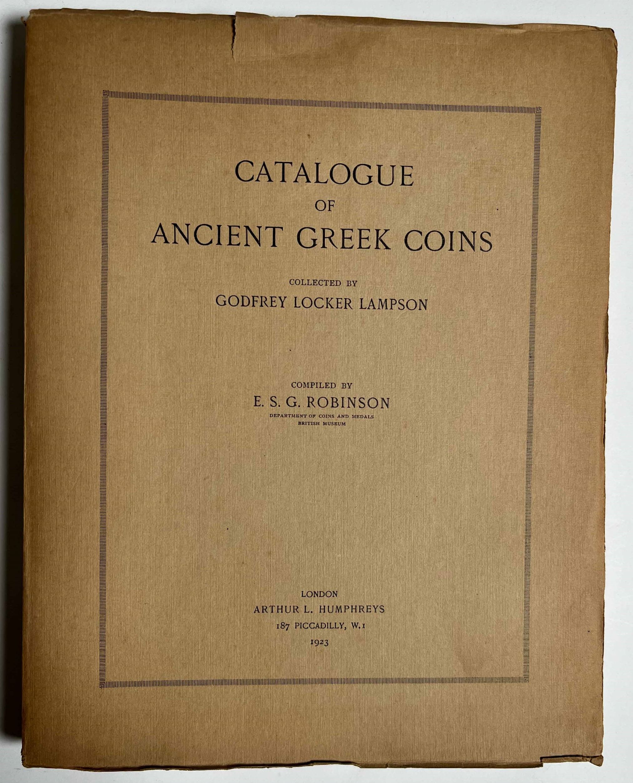ROBINSON E. S. G. Catalogue of ancient Greek coins collected by Godfrey Locker L [..]