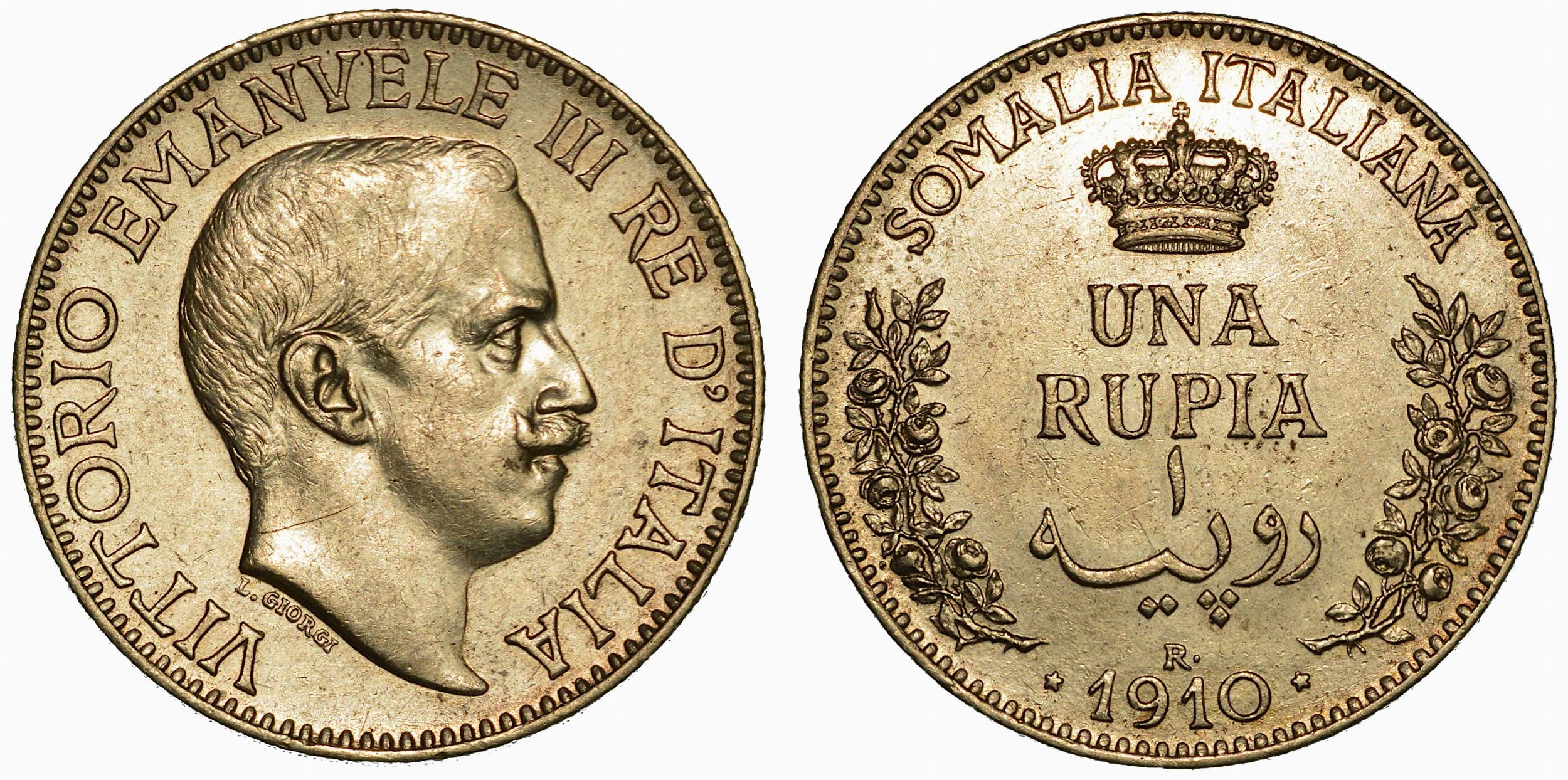 SOMALIA ITALIANA. VITTORIO EMANUELE III DI SAVOIA, 1909-1925. Rupia 1910.