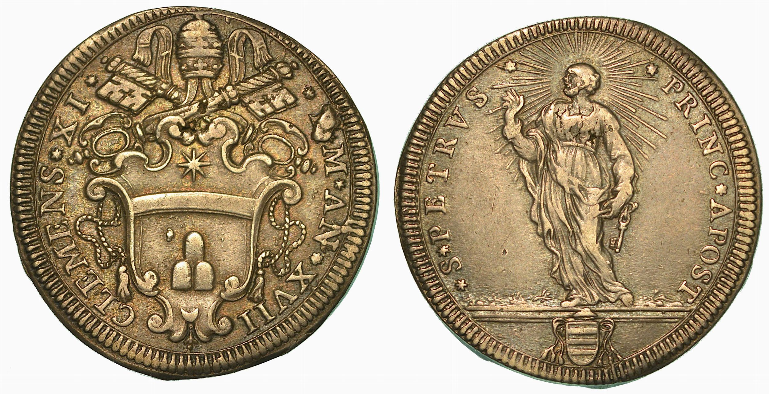 CLEMENTE XI (GIANFRANCESCO ALBANI), 1700-1721. Testone A. XVII.