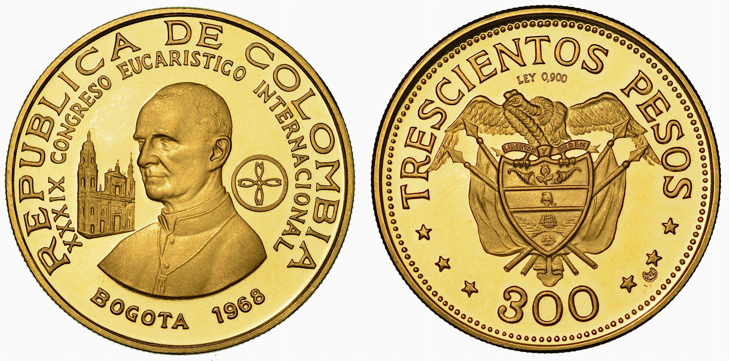 COLOMBIA. REPUBLICA. 300 Pesos 1968. Per il Congresso Eucaristico Internazionale [..]
