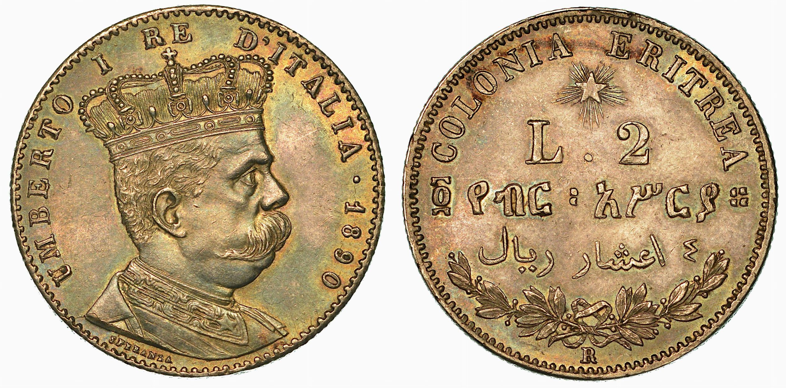COLONIA ERITREA. UMBERTO I DI SAVOIA, 1890-1896. 2 lire 1890.