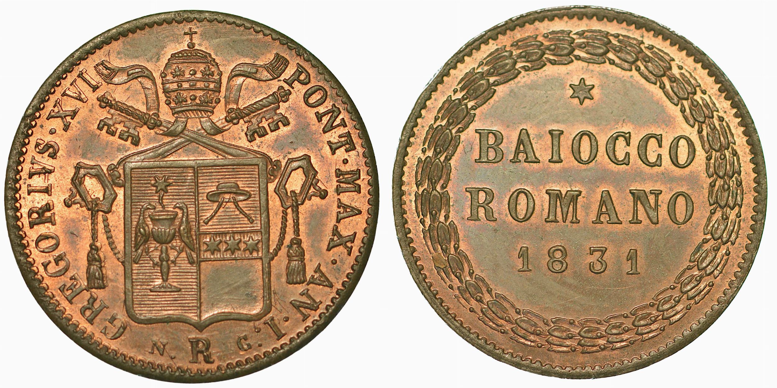 GREGORIO XVI (BARTOLOMEO ALBERTO CAPPELLARI), 1831-1846. Baiocco romano 1831. Ro [..]
