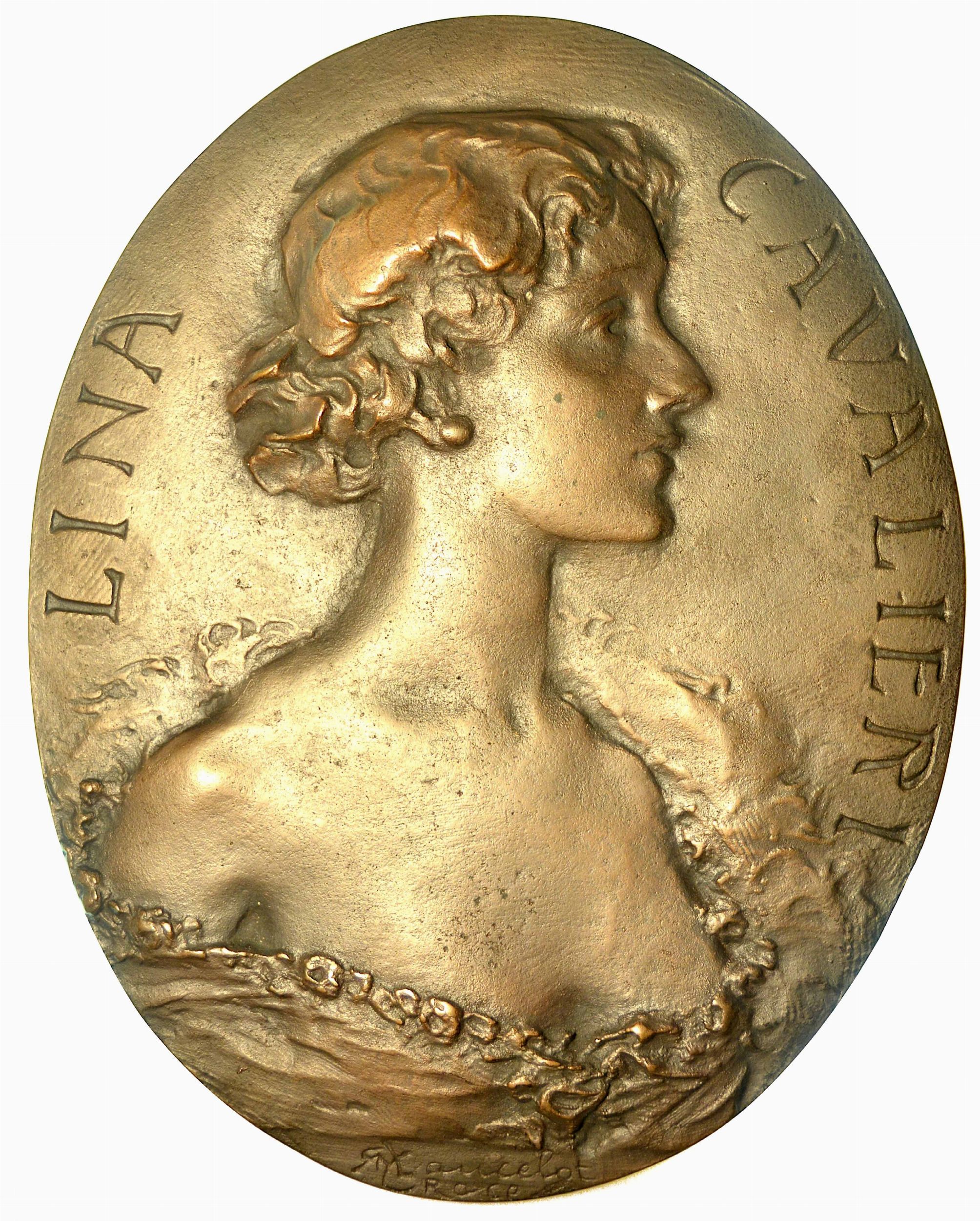 LINA CAVALIERI (NATALINA CAVALIERI), 1874–1944. Placchetta ovale in bronzo s.d.
