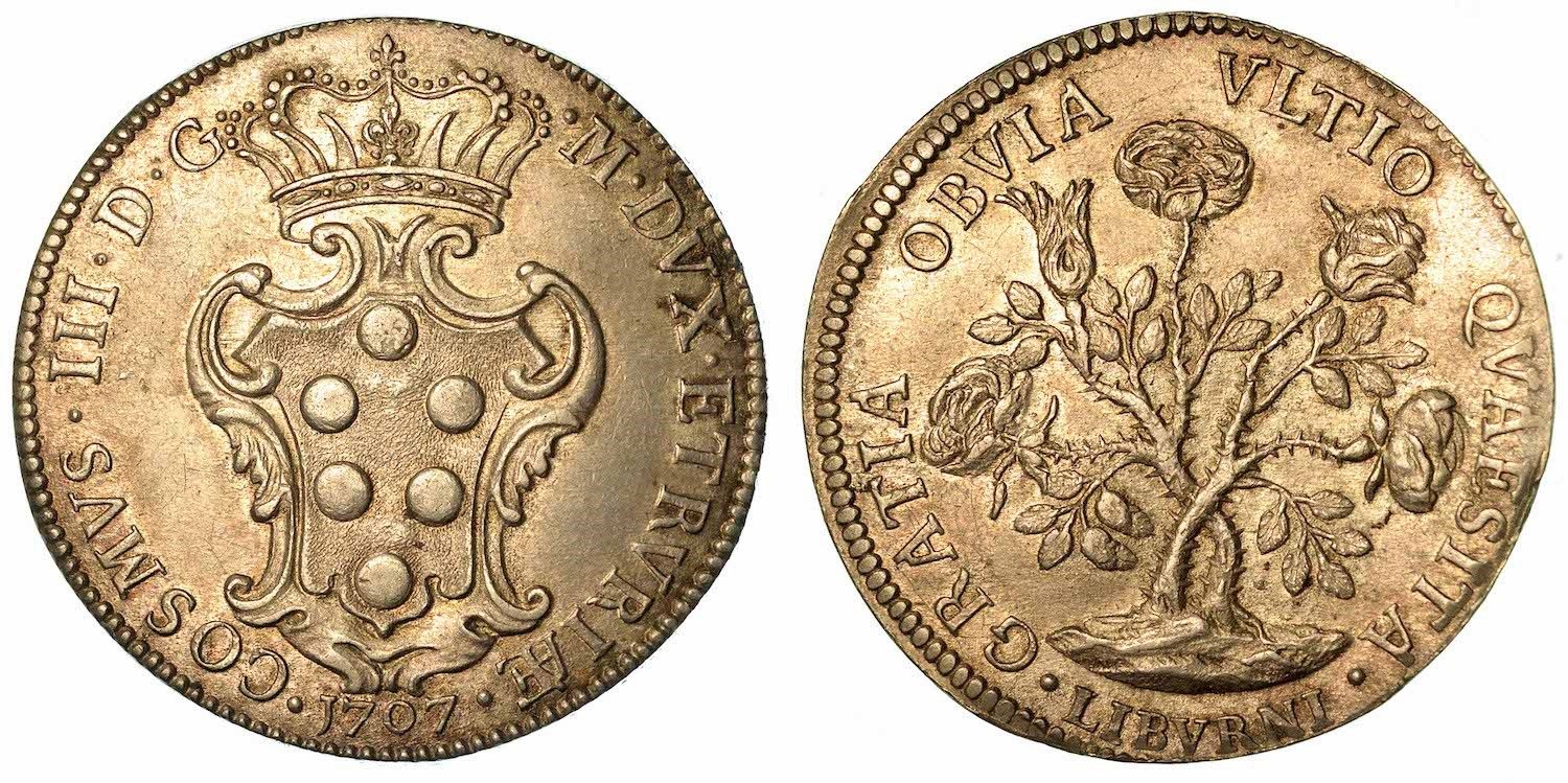 LIVORNO. COSIMO III DE' MEDICI, 1670-1723. Pezza della Rosa 1707.