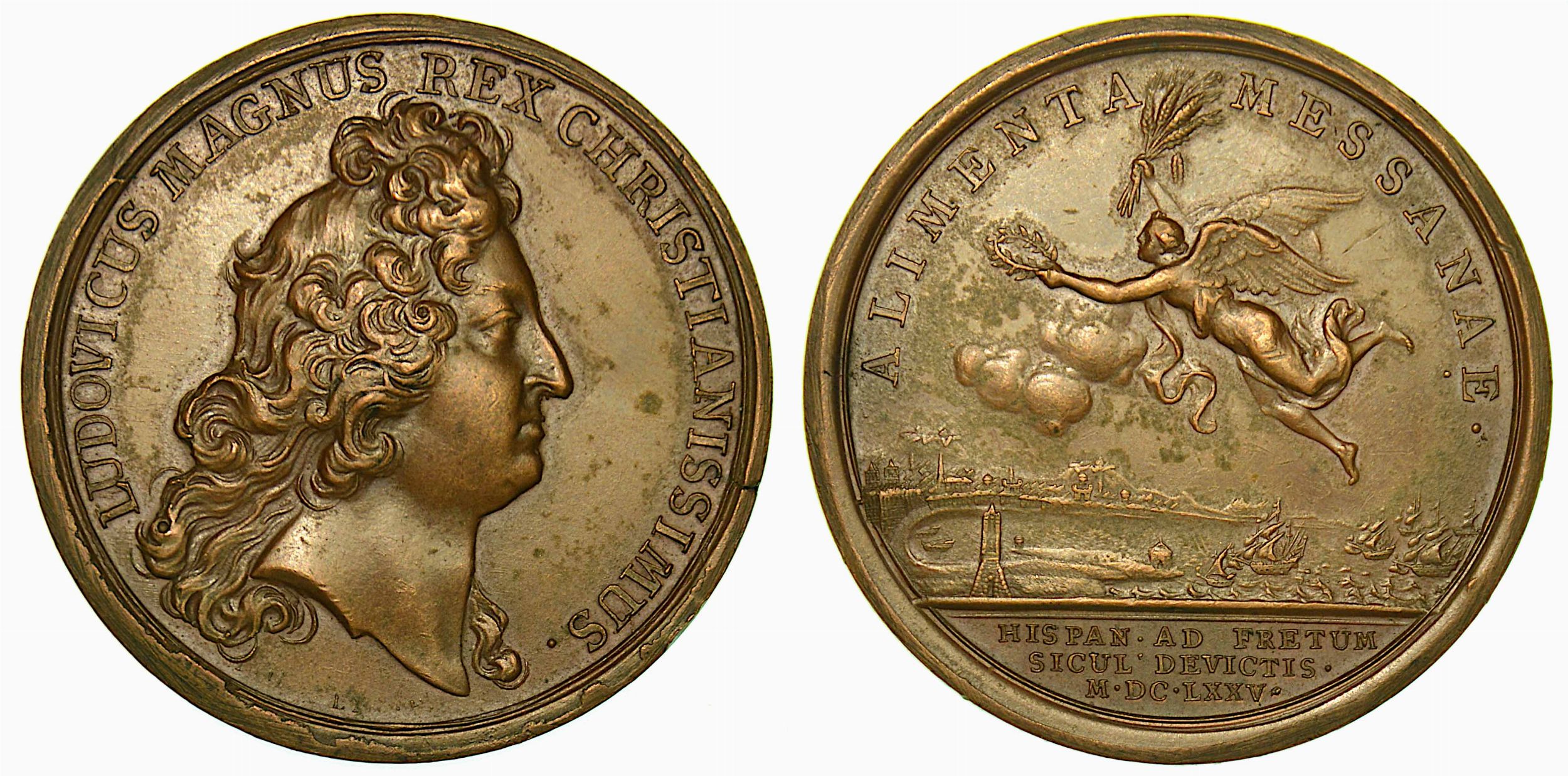MESSINA. LOUIS XIV, 1643-1715. Medaglia in bronzo 1675. Soccorso a Messina.