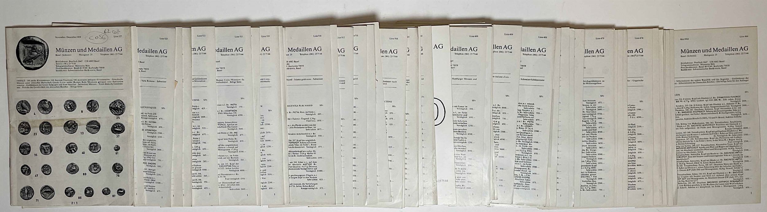 MUNZEN UND MEDAILLEN AG. Lotto di 62 listini a prezzo fisso.