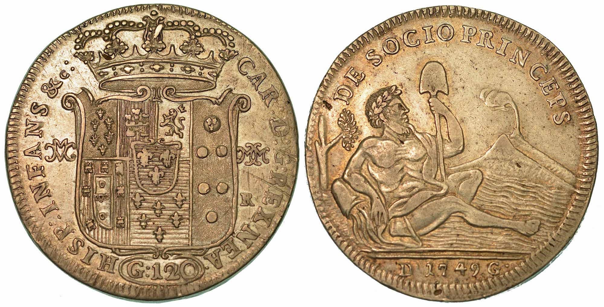 NAPOLI. CARLO DI BORBONE, 1734-1759. Piastra da 120 Grana 1749.