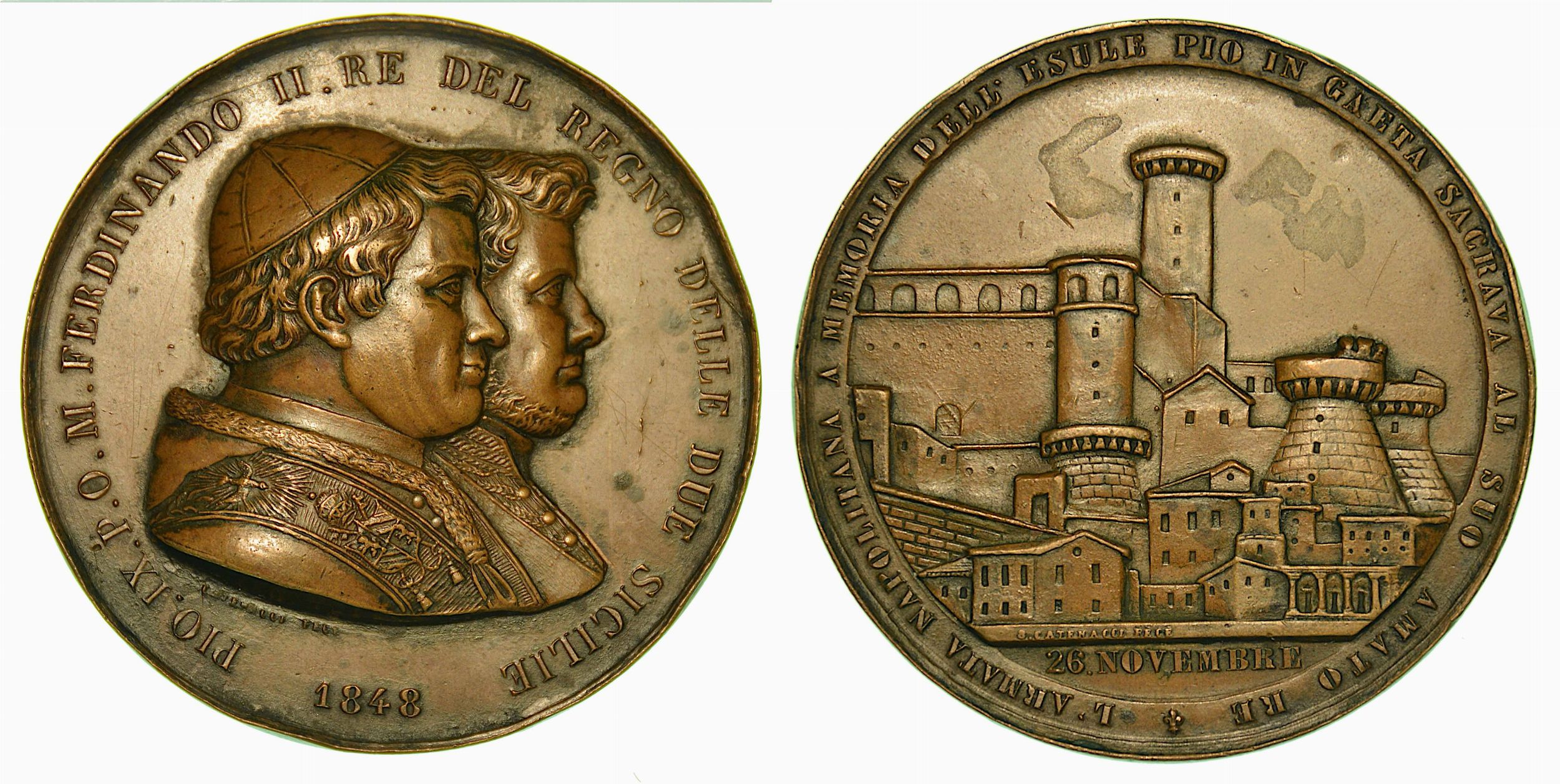 NAPOLI. FERDINANDO II DI BORBONE, 1830-1859. Medaglia in bronzo 1848. Esilio di [..]