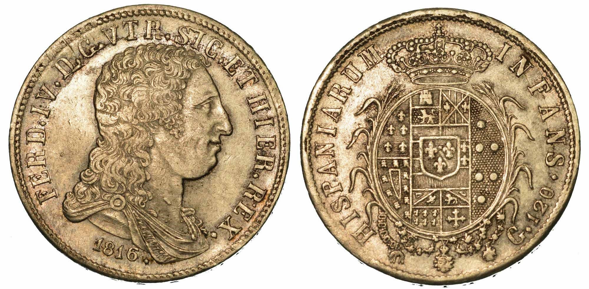 NAPOLI. FERDINANDO IV DI BORBONE, 1759-1816. Piastra da 120 Grana 1816.