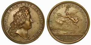 Testa a d. R/ Figura alata con corona e spighe vola sul porto di Messina. Opus Jean Dollin. Johnson, vol. II, [..]