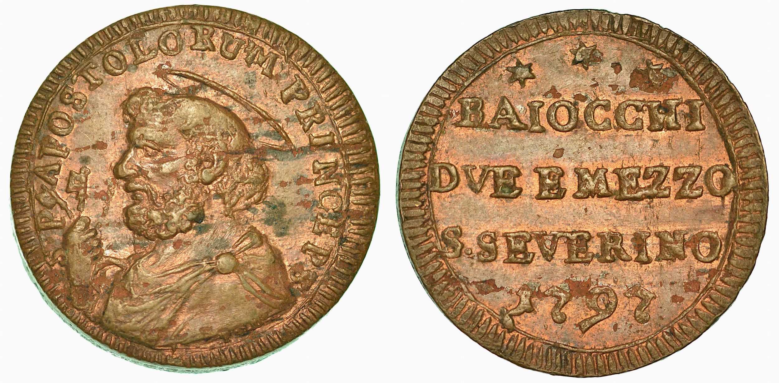 PIO VI (GIOVANNI ANGELLO BRASCHI), 1775-1799. Sampietrino da 2 e 1/2 Baiocchi 1797. [..]