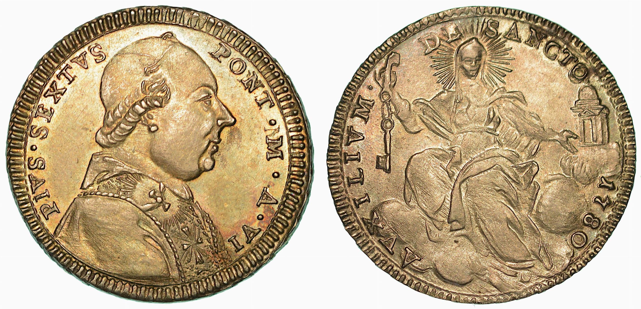 PIO VI (GIOVANNI ANGELLO BRASCHI), 1775-1799. Doppio Giulio 1780/A.VI. Roma.