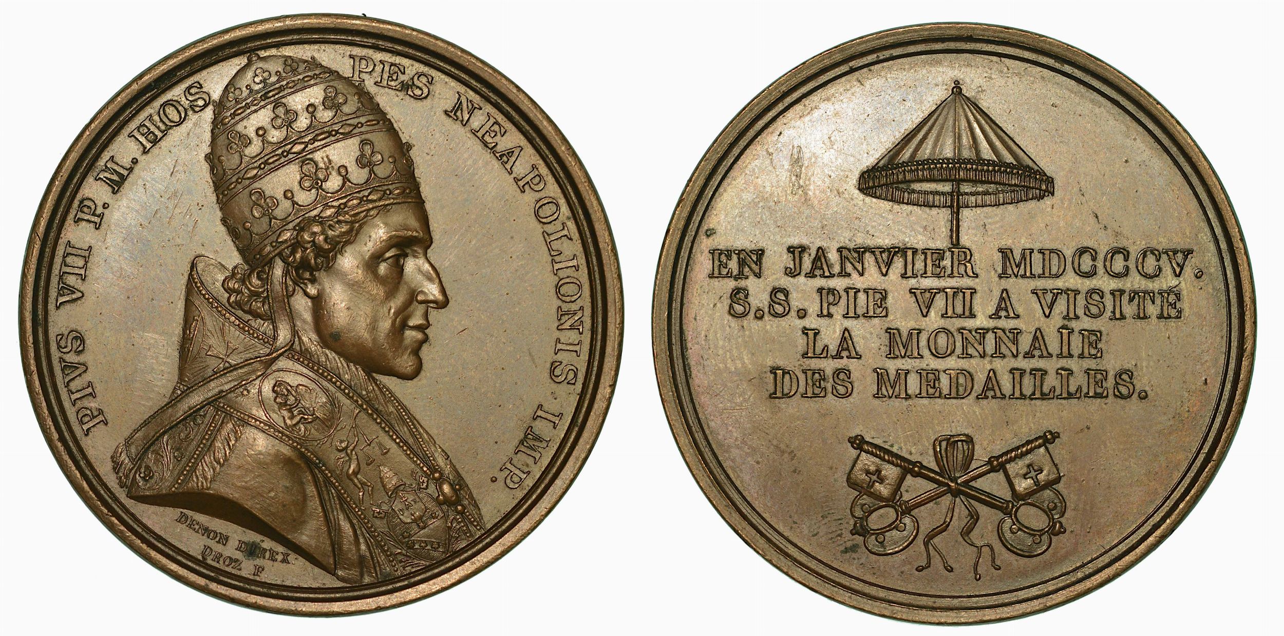 PIO VII (BARNABA CHIARAMONTI), 1800-1823. Medaglia in bronzo 1805. Visita alla zecca [..]