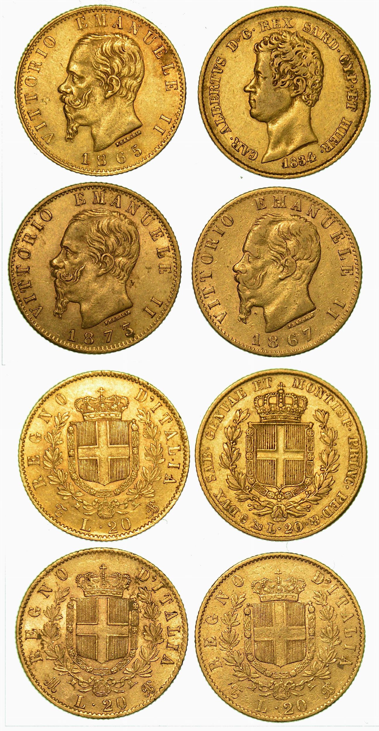 REGNO DI SARDEGNA E REGNO D'ITALIA. Lotto di quattro monete.