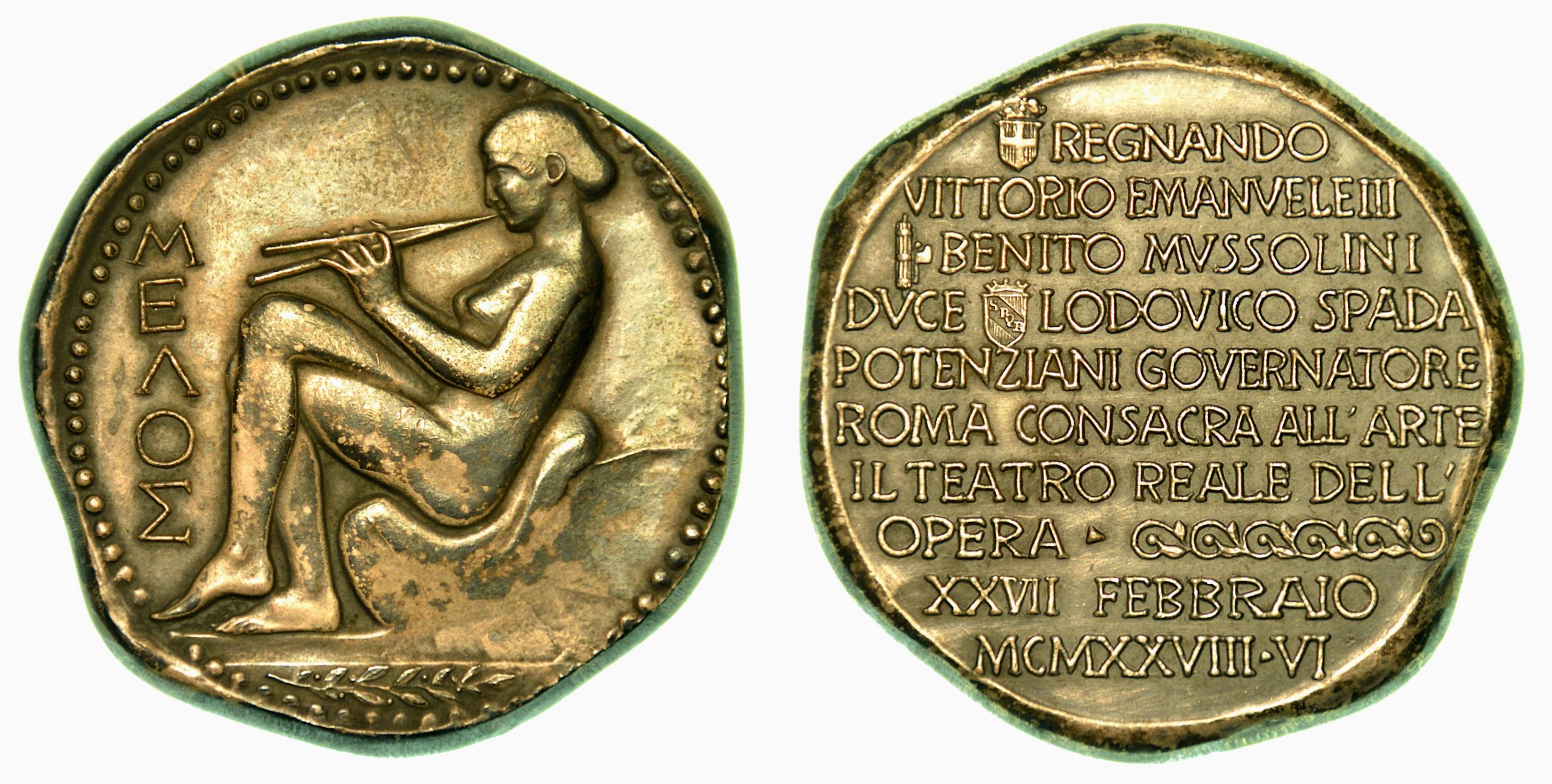 RIAPERTURA DEL TEATRO DELL'OPERA ROMA. Medaglia in bronzo argentato 1928.