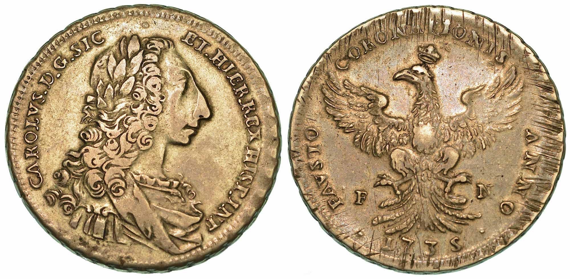 SICILIA. CARLO DI BORBONE, 1734-1759. 12 Taŕ 1735 dell'Incoronazione. Palermo.
