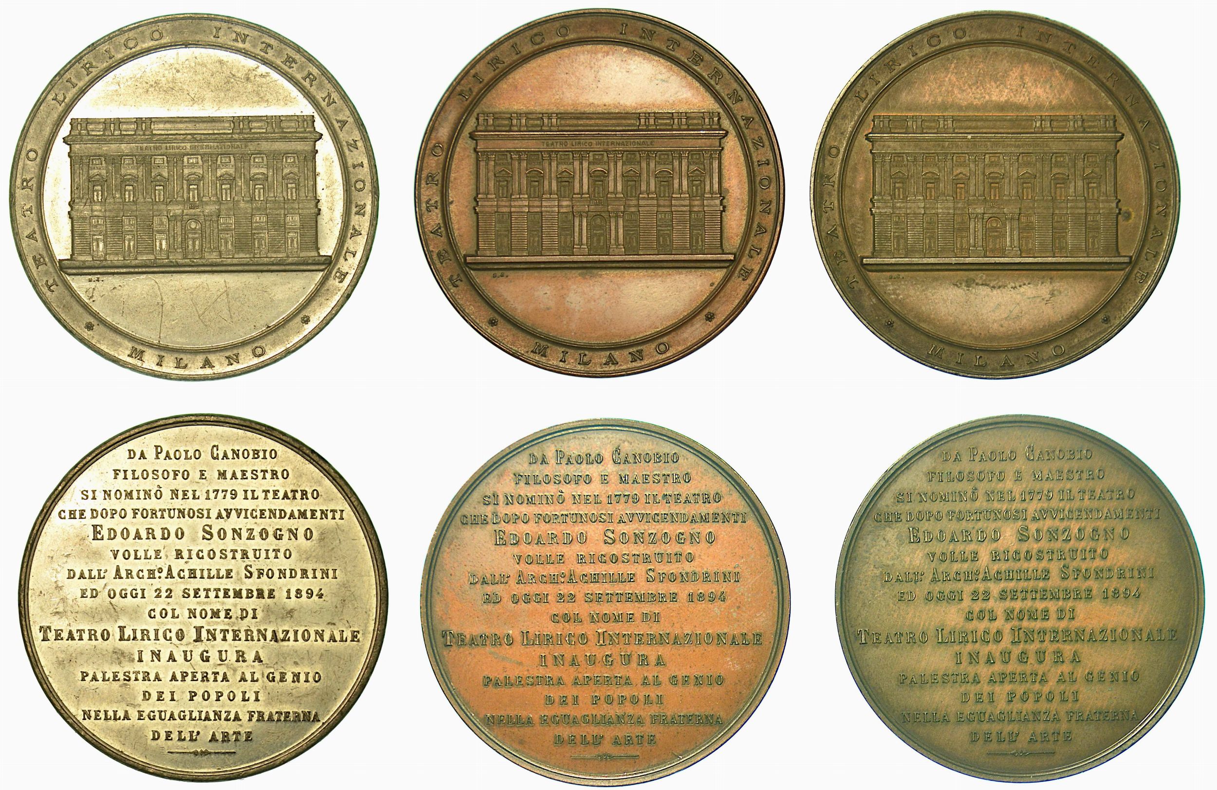 TEATRO LIRICO INTERNAZIONALE MILANO. Lotto di tre medaglie, una in metallo bianco [..]