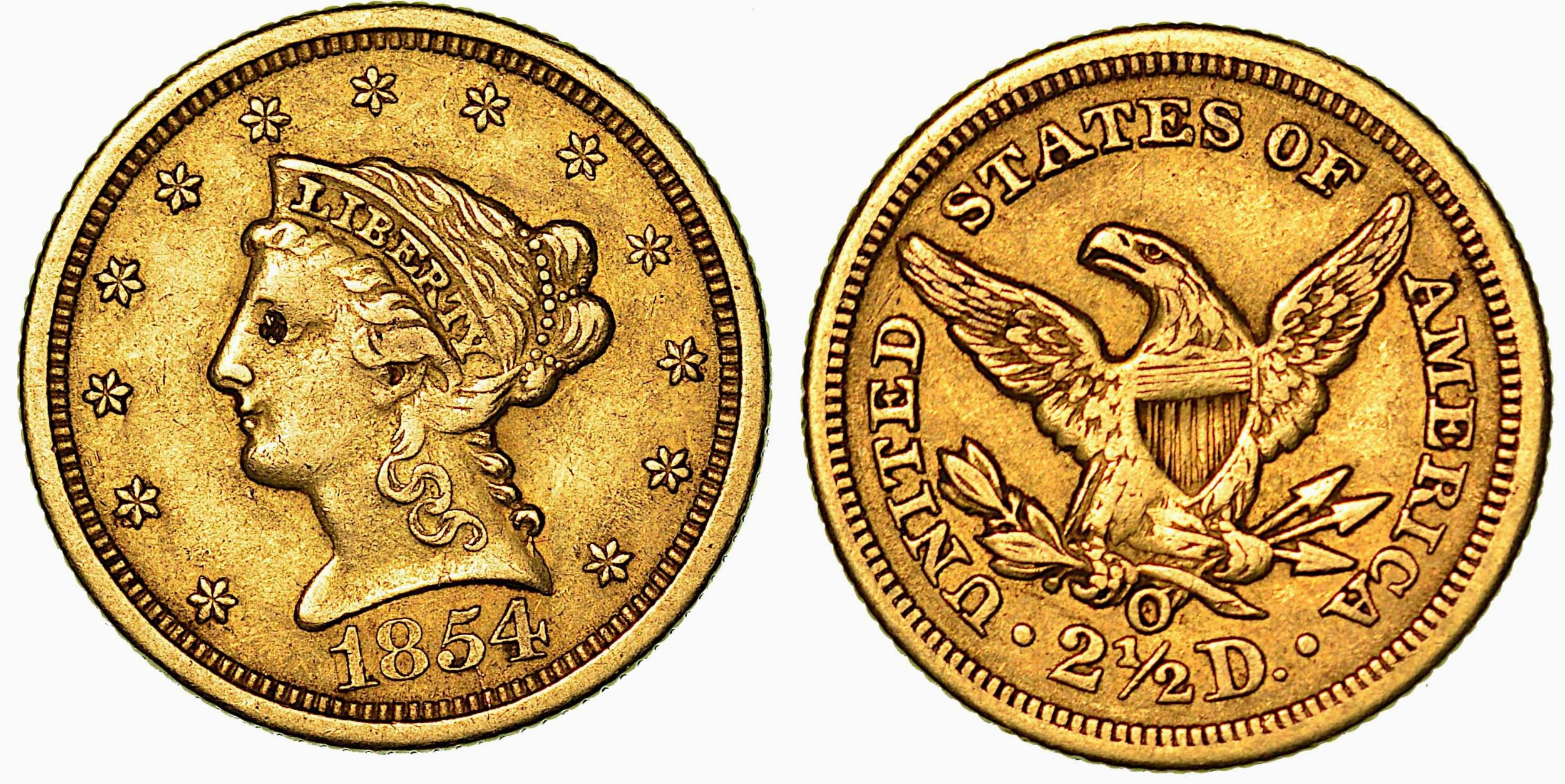USA. REPUBLIC. 2,5 Dollars Liberty 1854. New Orleans.