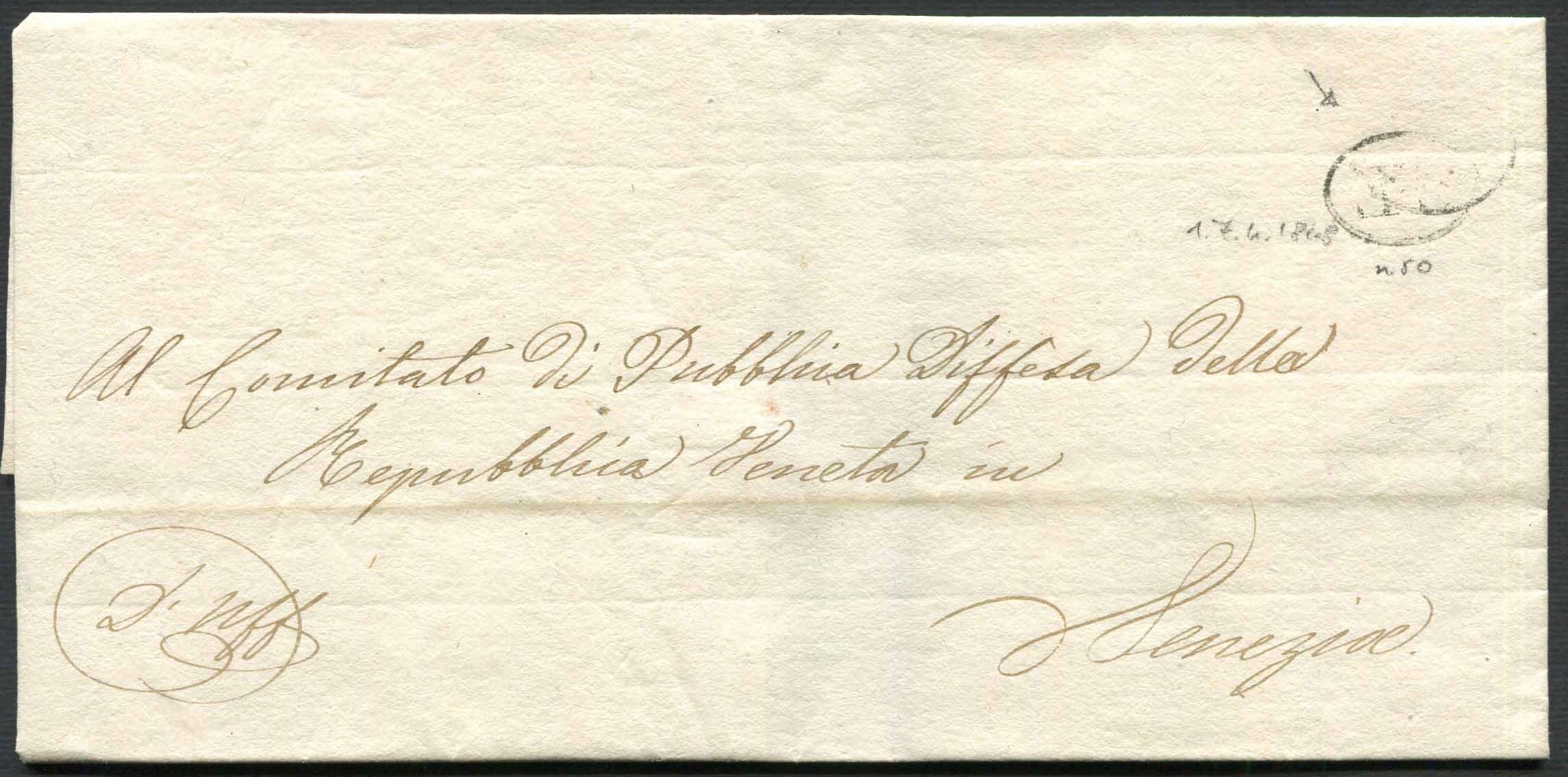 1848, Sovracoperta da Venezia per città del 17 aprile