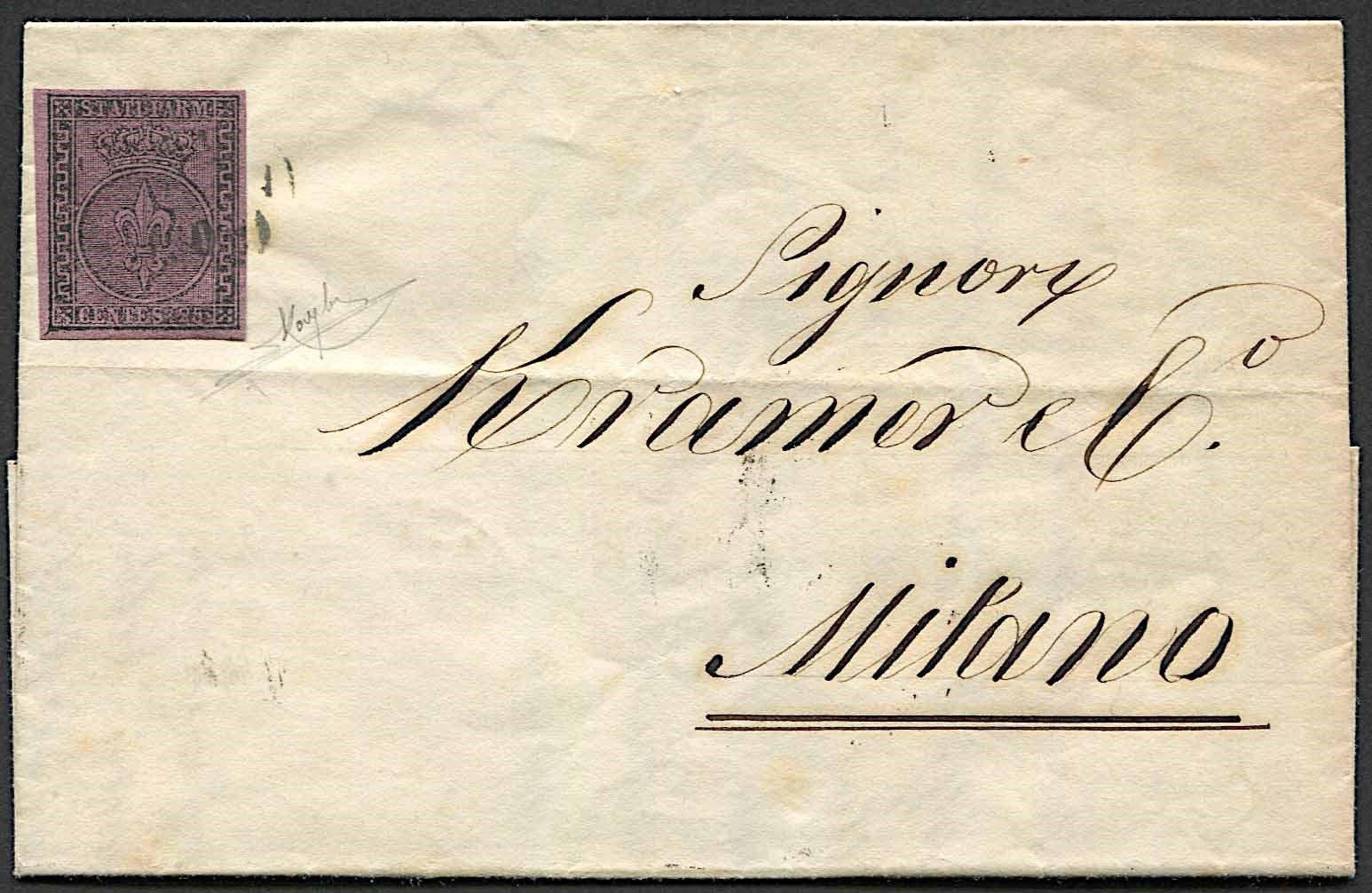 1854, Parma, lettera da Parma per Milano del 22 agosto 1854