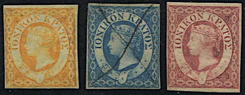 1859, Ionian Islands, imperforated three values