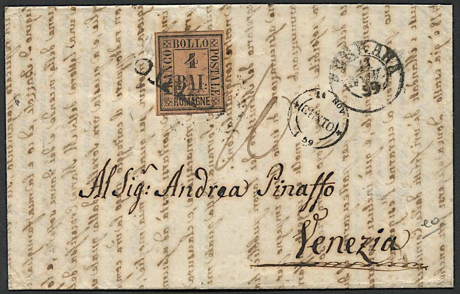 1859, Romagne, G. P., lettera da Cento per Venezia del 10 novembre