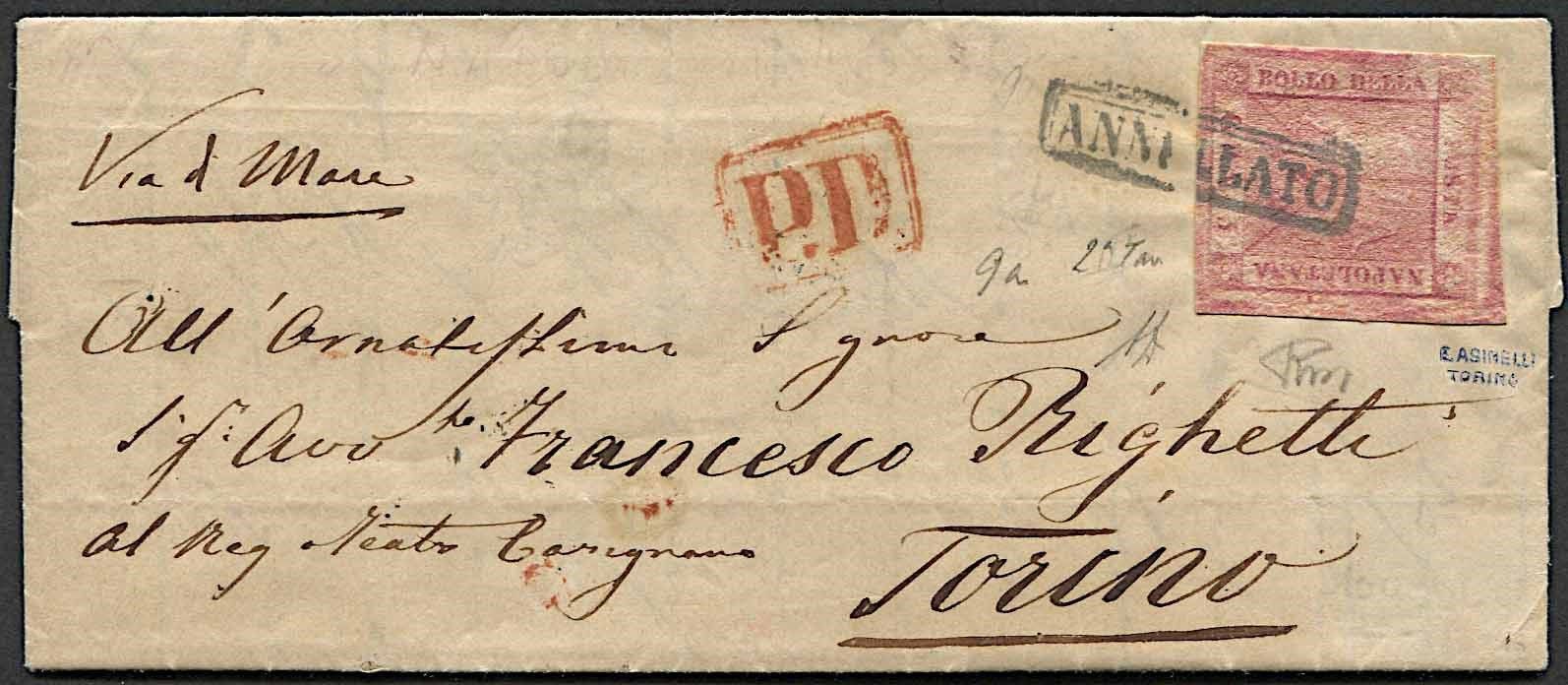 1860, Napoli, Dittatura Garibaldina, lettera da Napoli per Torino del 18 ottobre [..]