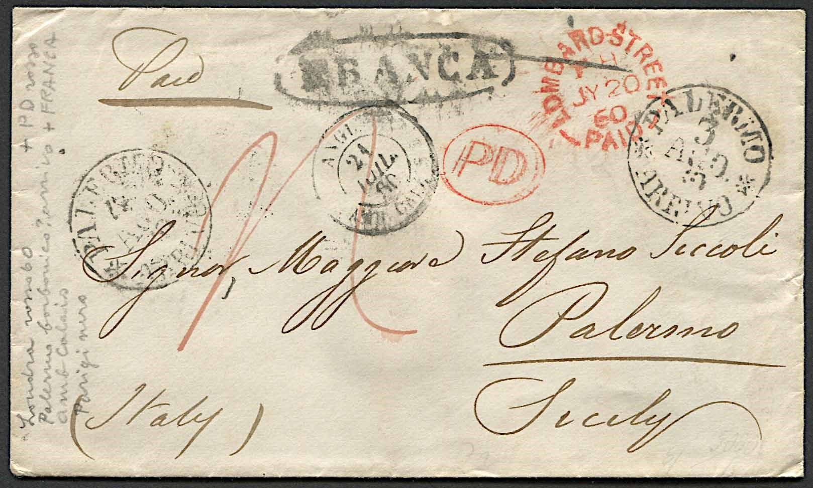 1860, Sicilia, lettera da Londra per Palermo del 20 luglio 1860