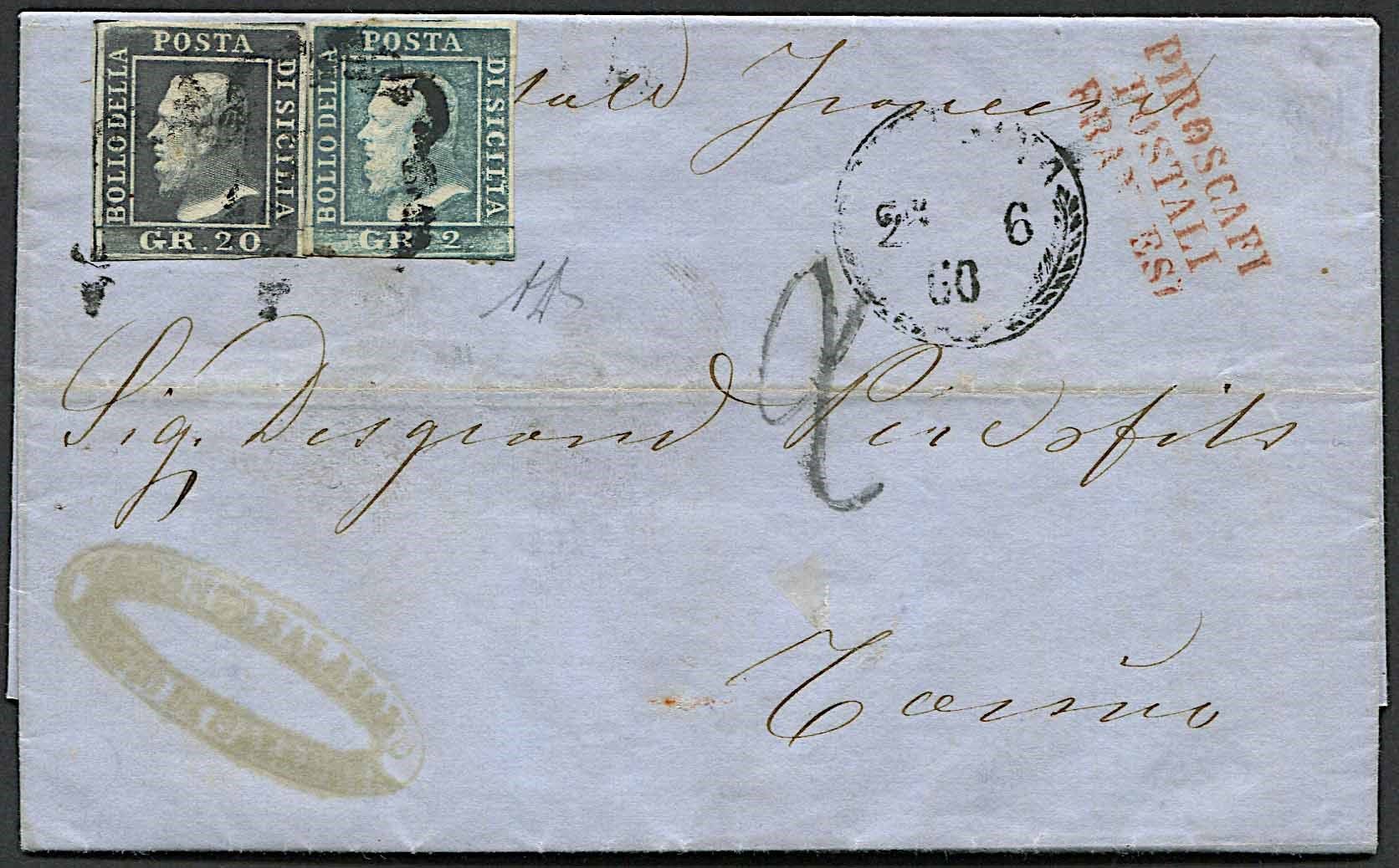 1860, Sicilia, lettera da Messina per Torino del 25 giugno 1860